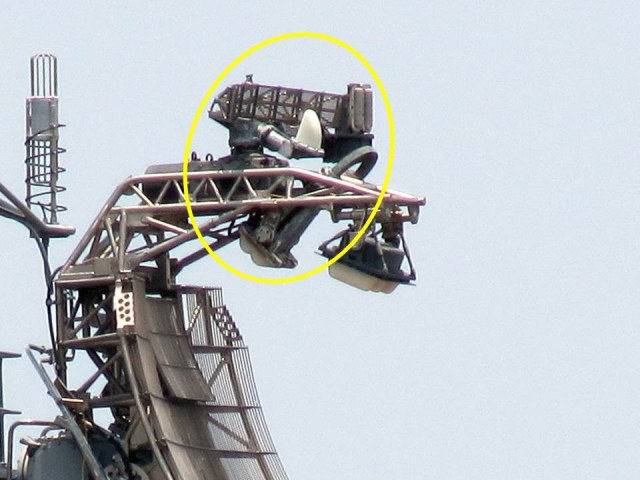 Вроде бы вариант антенны из двух элементов, сложенных вместе, имеет право на жизнь. Видны и прутья антенной решетки и ферма антенны.