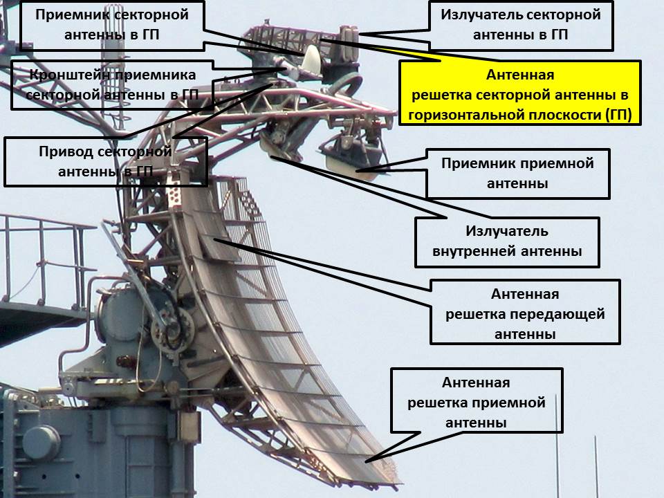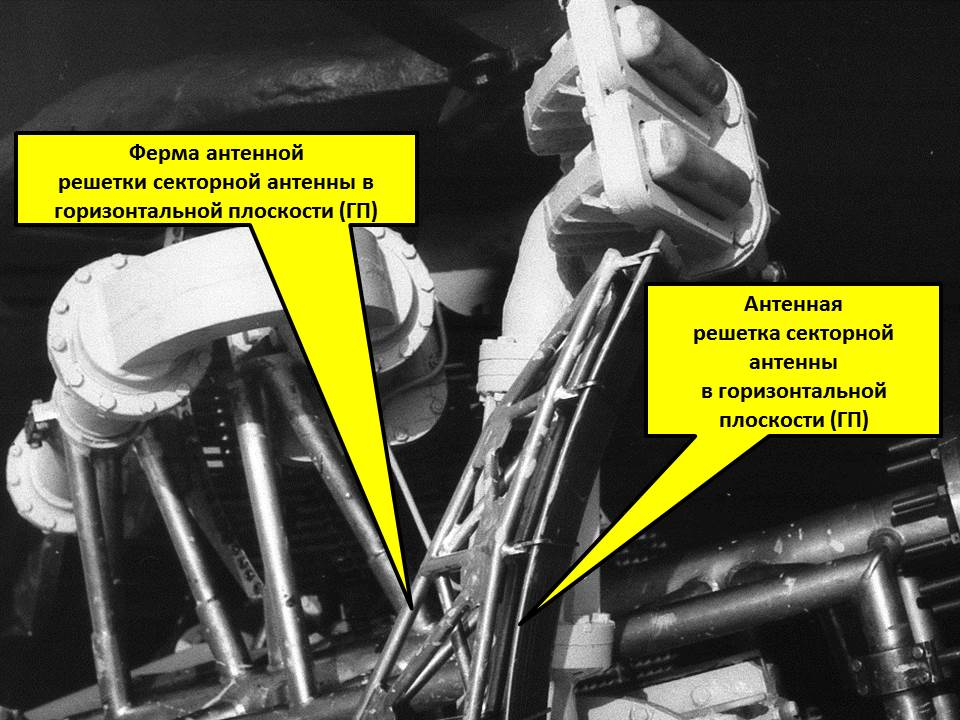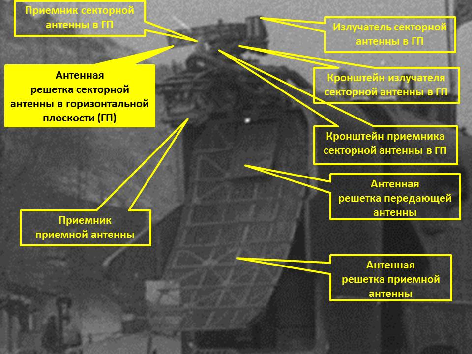 Продолжаю довооружение антенны АП (антенного поста) "Аргумент" мелочевкой. На этот раз это будет привод секторной антенны в горизонтальной плоскости (ГП) с приемником и излучателем секторной антенны ГП на кронштейнах и с излучателем внутренней антенны, также изготовленного и покрашенного три года назад (ссылка, ссылка, ссылка, ссылка и ссылка). Все упомянутые элементы выделены желтым цветом. Для лучшего зрительного восприятия буду также пользоваться и фотографиями антенного поста АП "Аргон-1164", где отдельные элементы АП имеют более четкий вид и выгодный ракурс.