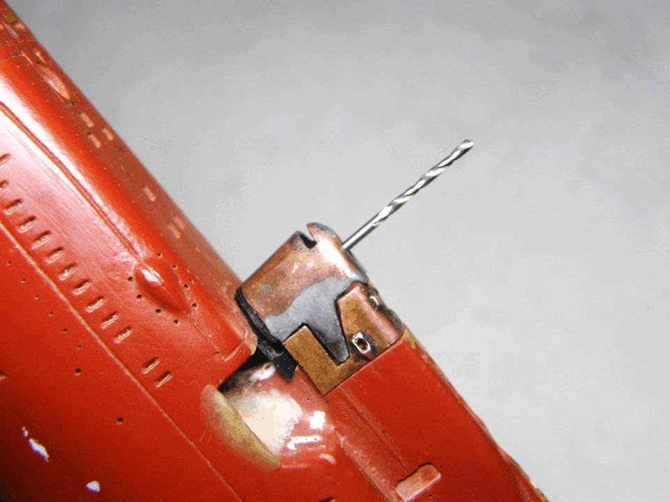 Далее, с помощью все тех же надфилей, вместил антенну в походном положении так, чтобы антенна свободно качалась внутри ОР при перемещении из поворотного в походное положение и обратно.
