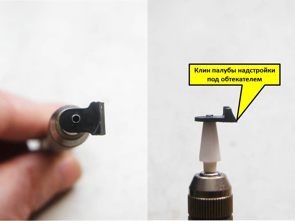 Надфилем доработал палубу так, чтобы обтекатель АП "Аргумент" свободно, как флюгер, вращался на палубе надстройки под обтекателем (кликаем по фото мышью и смотрим процесс в динамике).