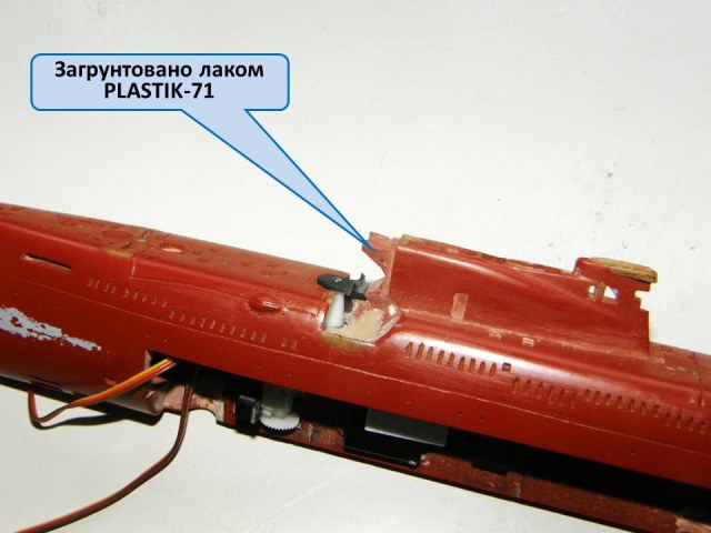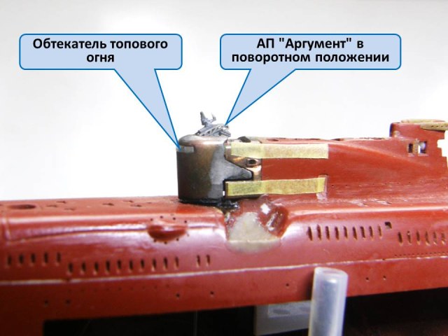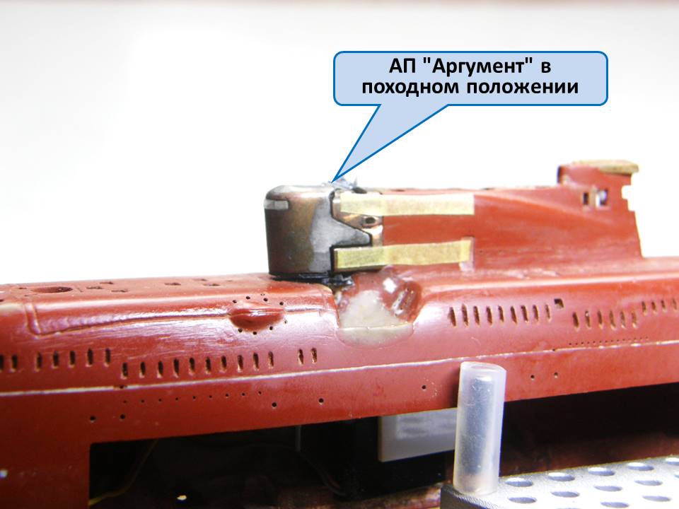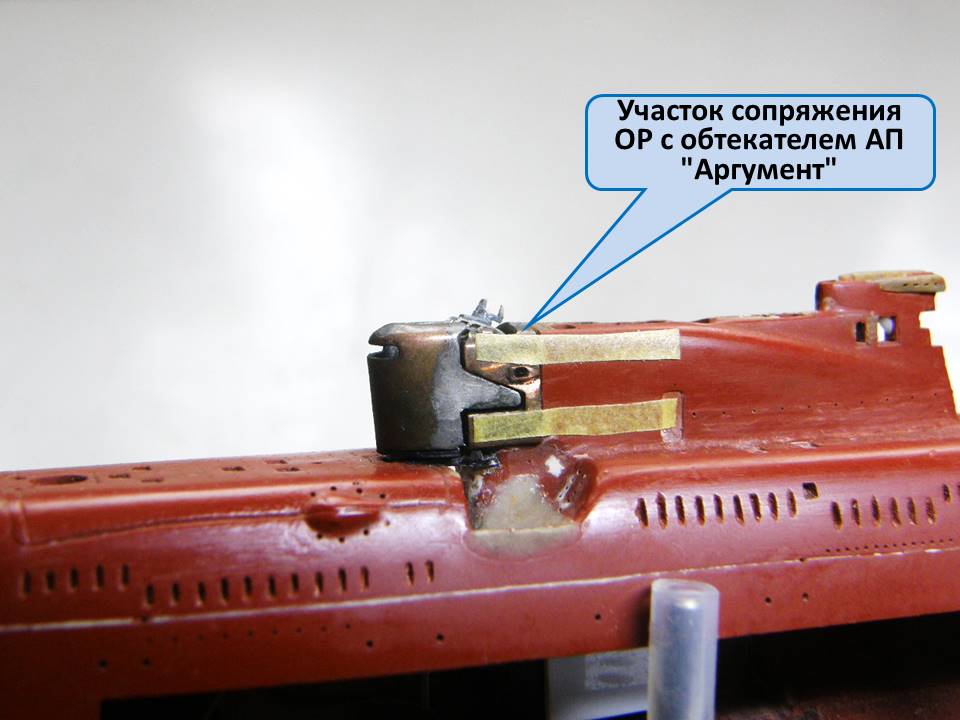А кто из коллег может объяснить, почему в креплении участка сопряжения ОР (ограждения рубки) с обтекателем АП "Аргумент" к ОР был использован комбинированный способ (лак PLASTIK-71 + эпоксидная шпаклевка EcoPutty), а не цианакрилатный клей + шпаклевка?