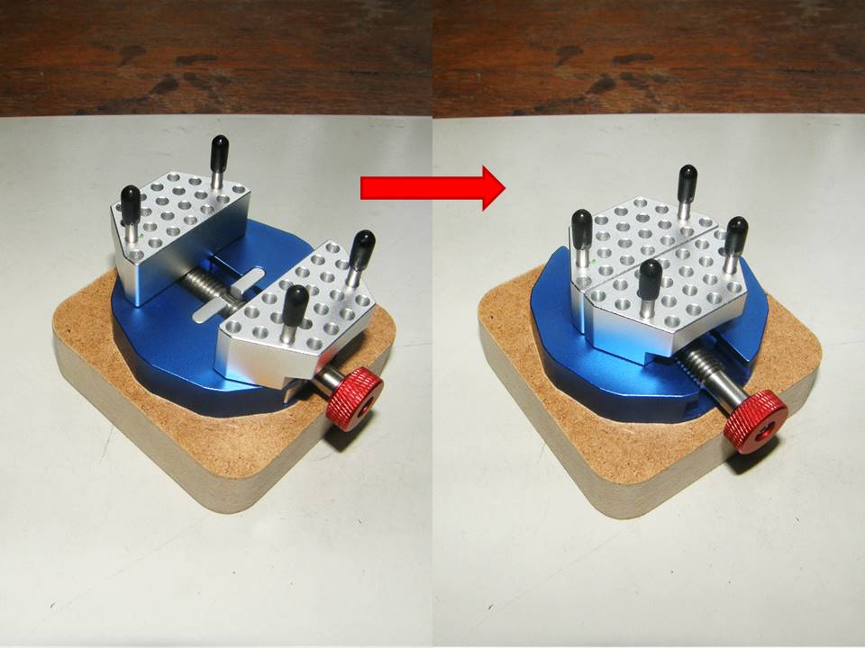 Потихоньку установил тиски в держателе и собрал их.
