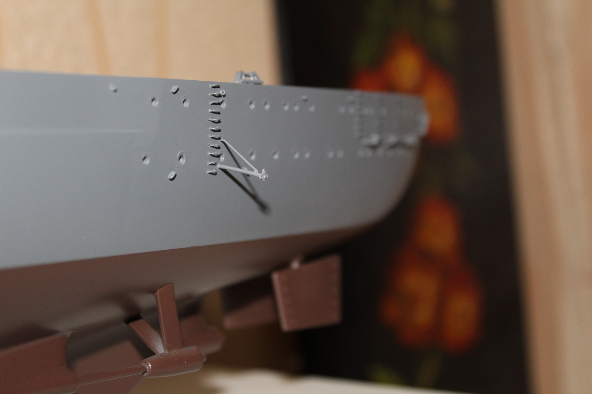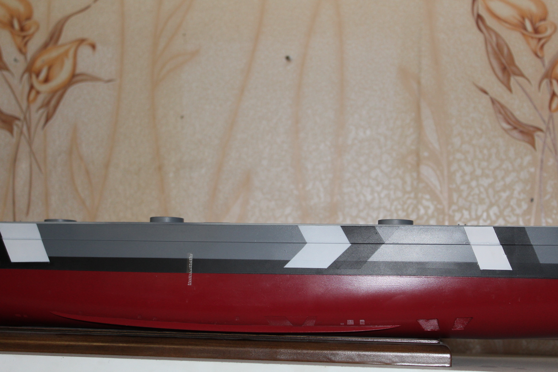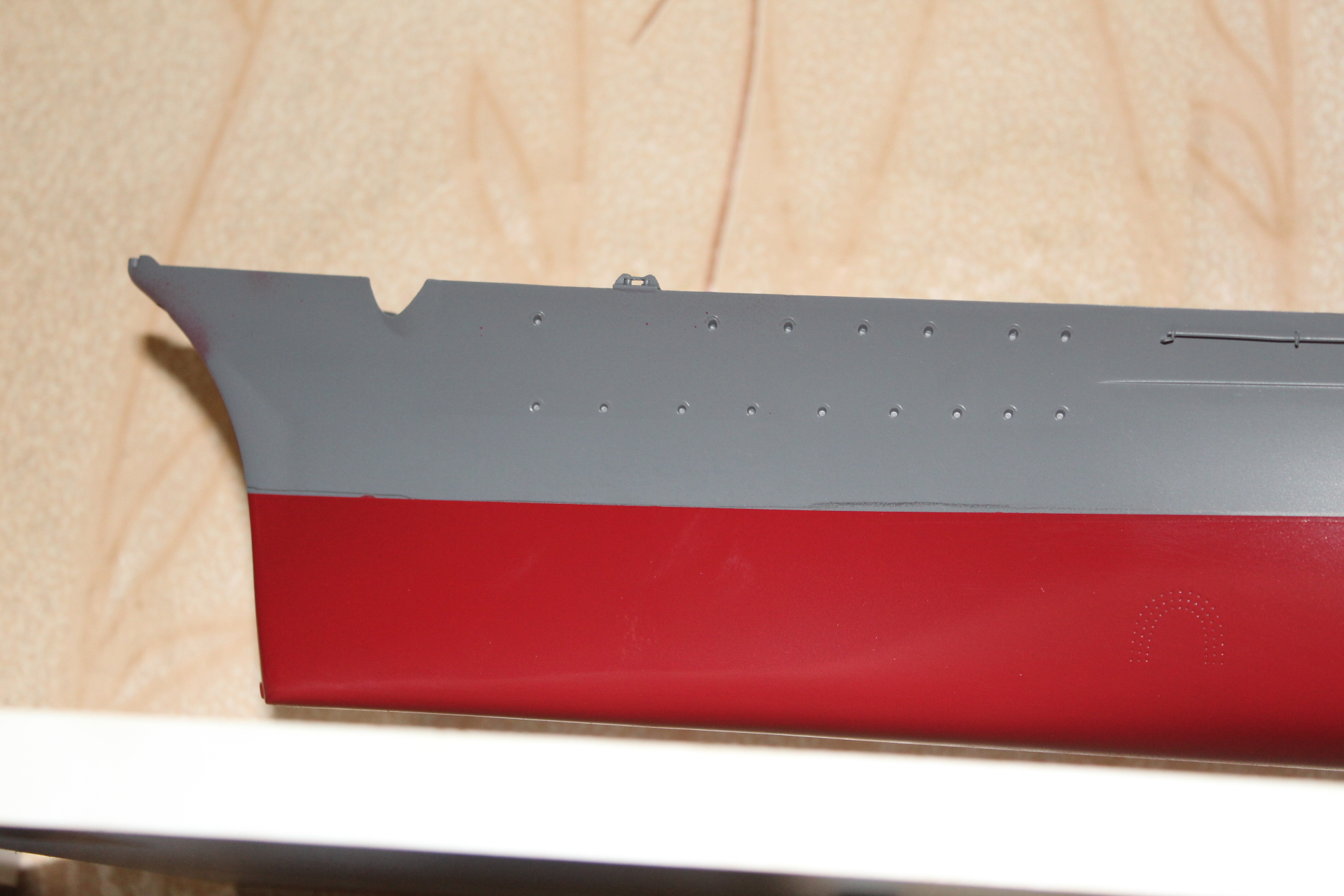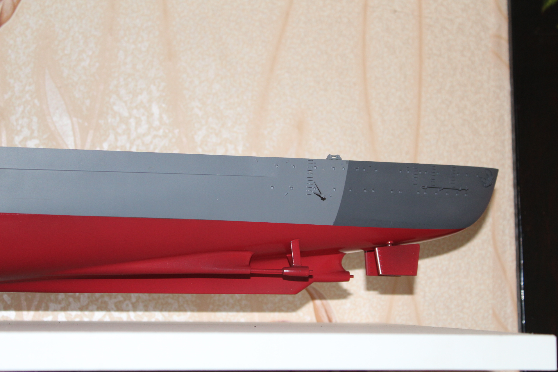 Никита, как вам уже говорили, не забудте при перекрашивании поднять уровень подводной части корпуса и ватерлинии несколько выше, чем есть сейчас. Ориентируйтесь при этом на фото прототипа.