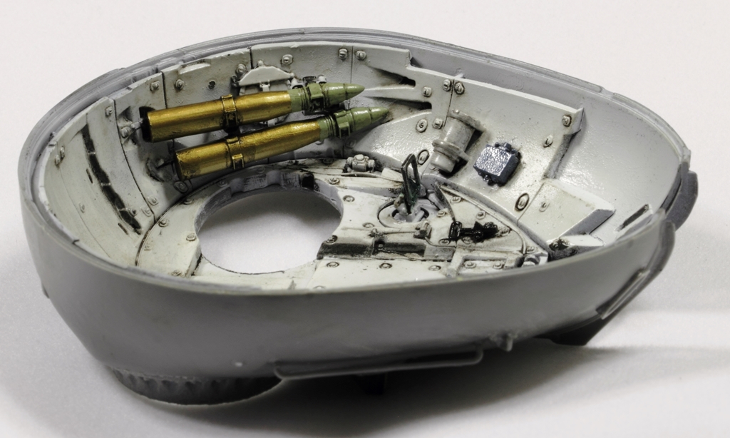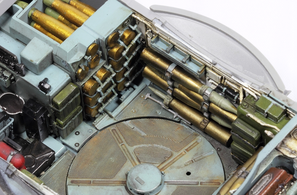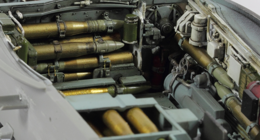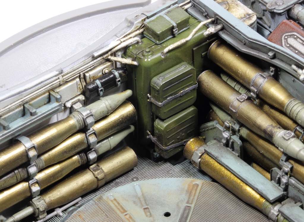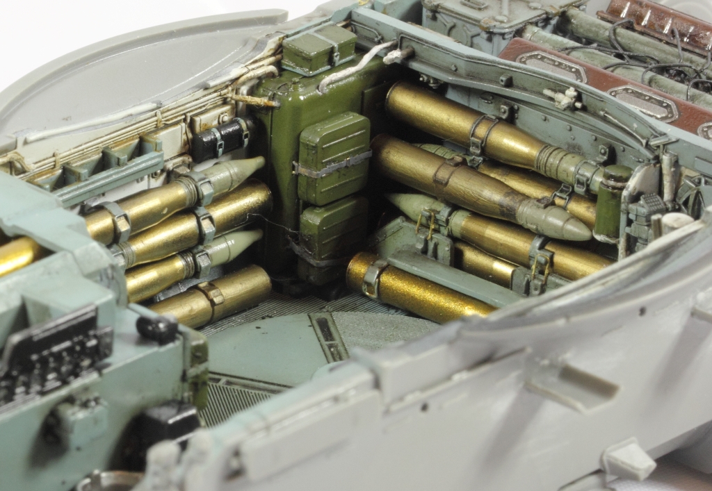 @Shkalik, сперва черный грунт от Тамии, стравленный с баллончика, потом слой футуры. Затем те "чистые" снаряды, что в кассете, покрывал Sm02 от Gunze Sangyo. Остальные гильзы красил AMIG8206 Ammo Mig