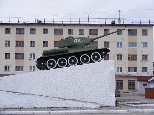 У нас почти в каждом городке стоят Т-34.Сверху вниз:г.Хойники,г.Речица,г..п.Брагин.В Хойниках танк поставили в конце 1960-х годов.В Речице экипаж оставил свой подбитый танк при освобождении города.Что и запечатлено на фото.Брагинский достали из болота где-то в 1978-1980 при строительстве моста.Помню как его везли в ремонт на трале,на нём ещё родная краска была.