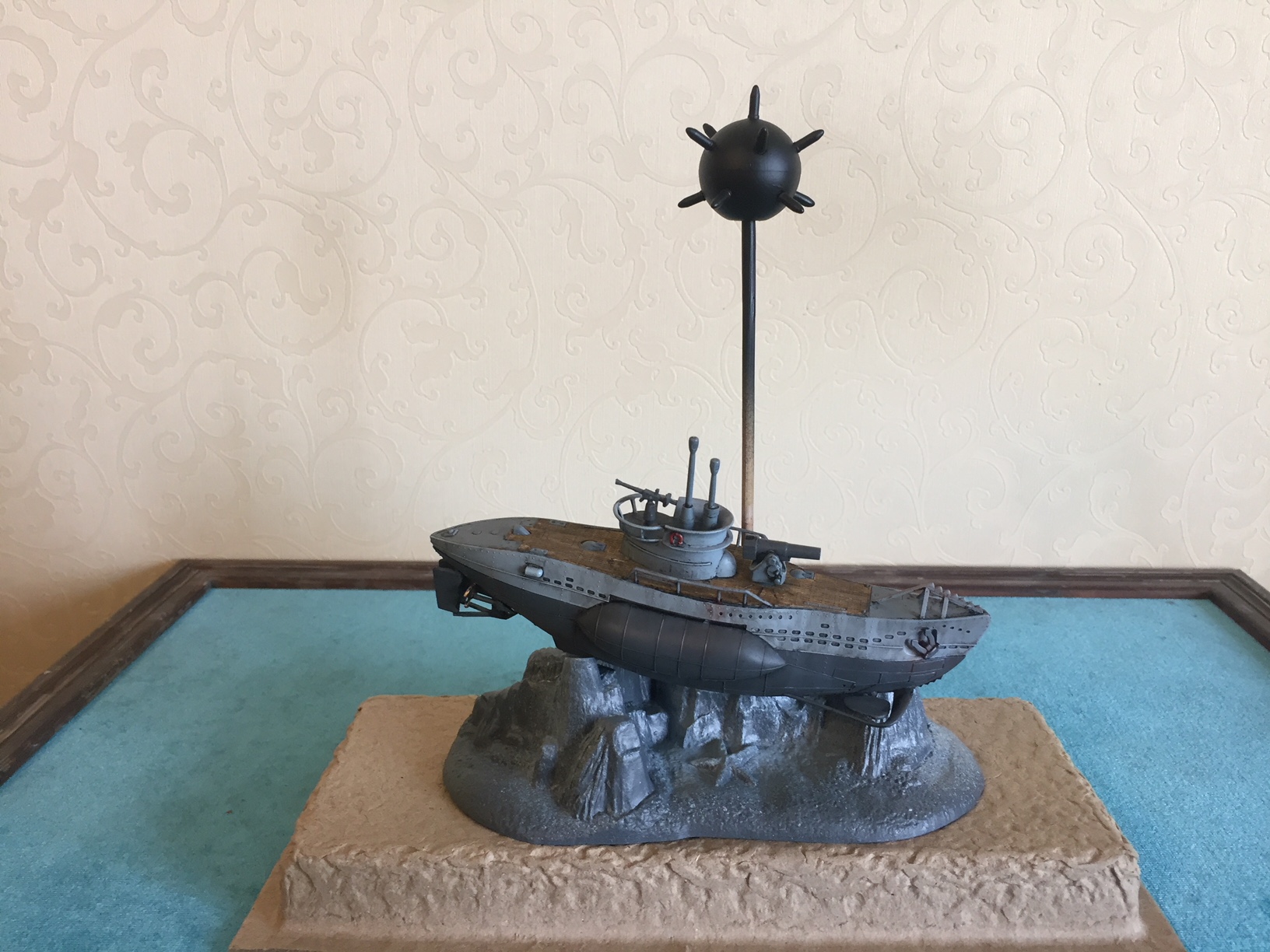 Владимир, приветствую! А если саму мину изготовить из пенопласта? Будет легче шарик и тогда пропаяный тросик из масштабной проволоки выдержит. Можно стальную проволоку скрутить шуруповёртом (проволока с водопроводных шлангов).