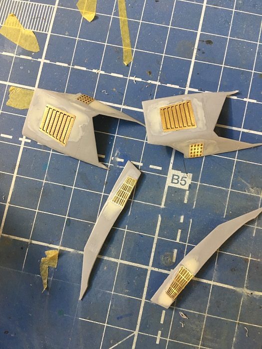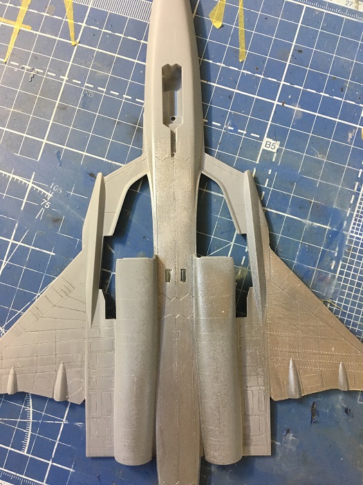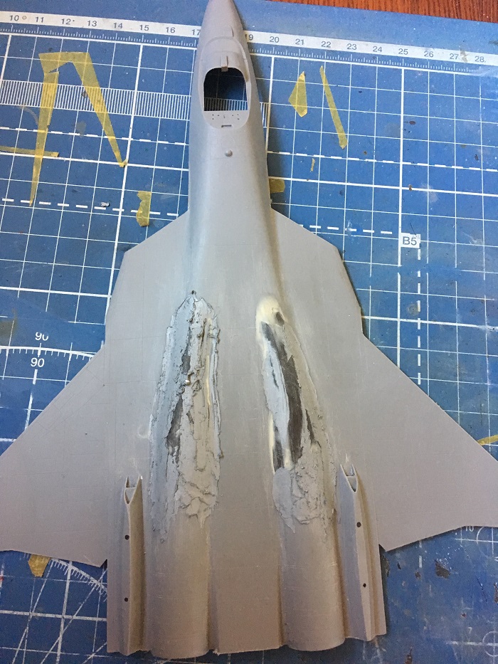 Небольшой отчет о том что сделано. На верхней части фюзеляжа для проверки косяков с шпаклевкой, задул серебрянкой. Косяки конечно же сразу нашлись. Пришлось шпаклевать и шкурить. Пока верхняя часть сохла, начал резать расшивку на нижней части. И ВЗ "облагородил" травлением. Чуть не забыл, на створках бомболюка прорезал отверстия и вклеил сеточку от чая.