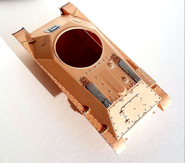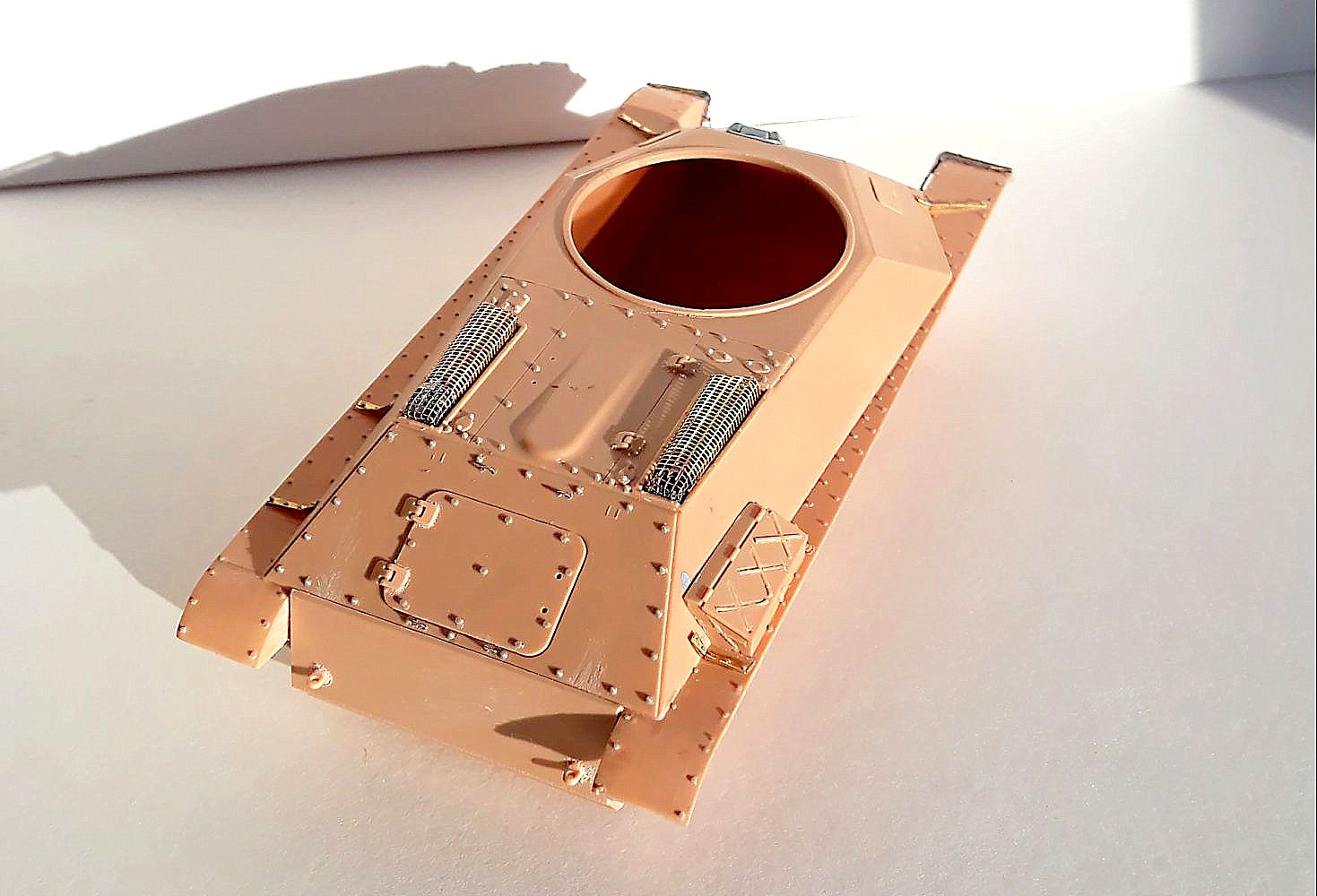 1. Поставлены метизы от "МК" - по верху корпуса в корме - пулестойкие болты 0,8 мм, по кормовой снимающейся бронеплите - пулестойкие болты на 0,8 мм, кормовой люк - болты на 0,8 мм, лючки по верху корпуса - пулестойкие на 0,6 мм, болты по надгусеничным крыльям и "косынкам" - на 0,6 мм.