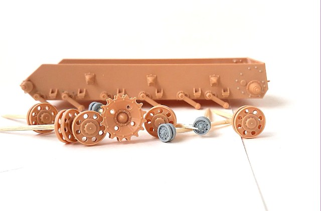 . Поддерживающие катки смоляные от "МиниАрм", т.к. аналогичные от производителя - в топку. А вот "ленивец" от "МиниАрма" ставить не стал, т.к. он с отверстиями по окружности, а на прототипе - сплошной "ленивец". Так что оставил "родной"....