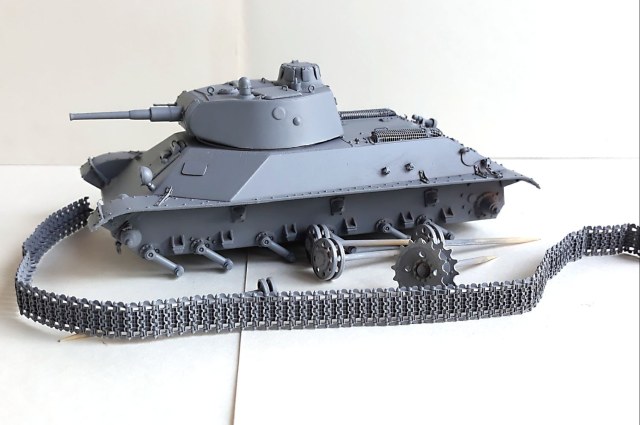 Осталось дособрать одну гусеничную ленту и... пачкать.