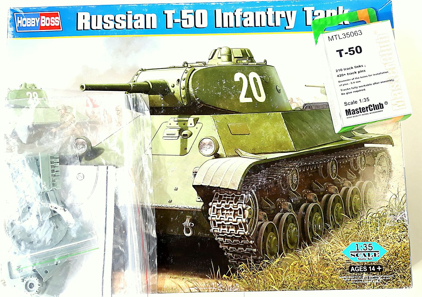 В стройке будет участвовать модель от "Хоббибосс", металлические траки от "МастерКлаб", различные метизы от этого же производителя, точеные стволы пушки и пулеметов, набор поддерживающих катков и башня от "МиниАрм". Машину буду строить из состава 488 отдельного танкового батальона Закавказского фронта на осень 1942 г. Эти машины имели черты как раннего, так и позднего образца. Кстати, машина из Кубинки как-раз и похожа на технику 488 батальона (кроме надгусеичных полок, которые являются какой-то самодеятельностью).