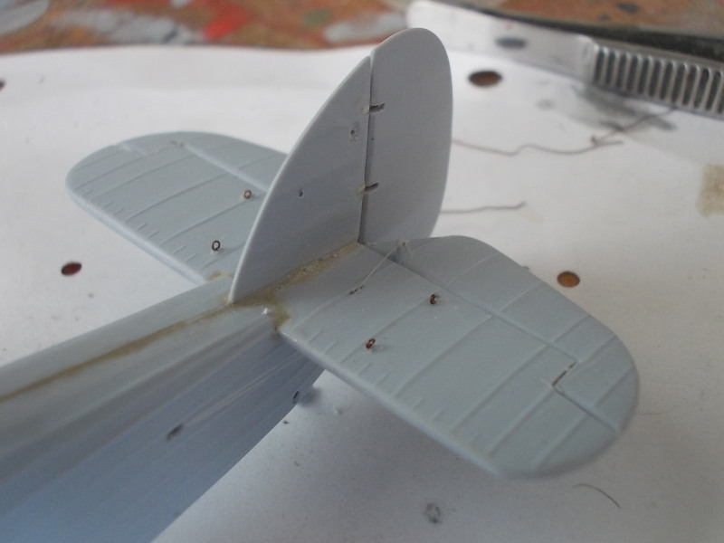 Приклеил стабилизатор и киль.Руль поворота отрезал,сделаю узлы навески.Нижнее крыло установлено насухо,всё остальное обточено.