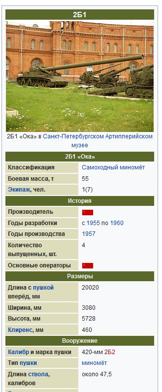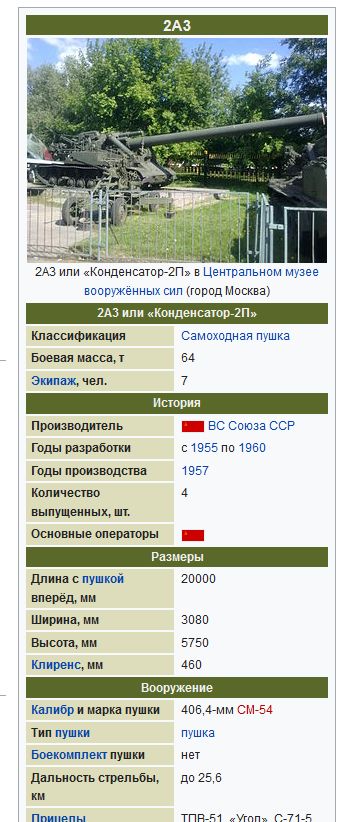 Видимо по всем источникам накопилась волна опечаток и неточностей. По идее, для Оки - только длина орудия составляла 20 метров. По источникам - длина - 47,5 калибров. Т.е. 47,5*420мм - 19,95м, и это без учета базы от Т10м.А вот для Конденсатора действительно длину орудия не так просто найти. Знакомый подкинул ссылку на блог, там для Конденсатора указана длина в 30 калибров, т.е. 30*406 - 12 метров длина орудия.