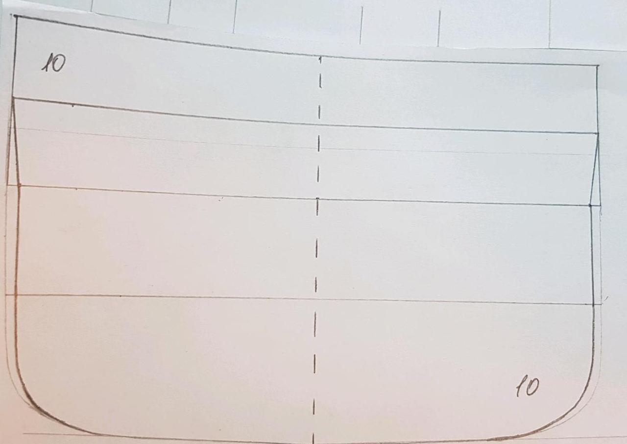 Начертил продольную усиливающую плоскость, которая будет идти под углом по линии слома борта. Вот тут то и обнаружил еще один свой косяк. Плоскость проходит от шпангоута 1.1 сквозь все шпангоуты и упирается в 11 шпангоут в стык верхней палубы. Шпангоут номер 10 я ранее не доглядел и он остался прямым. Пришлось его тоже корректировать.
