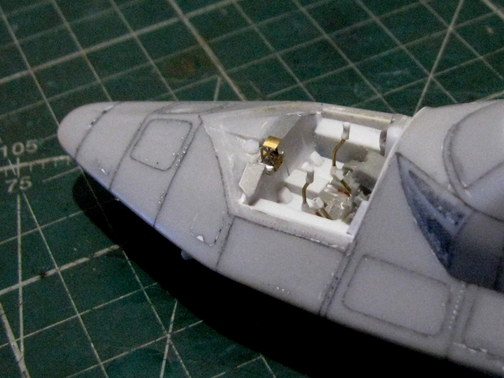 Освежил кабину доширакропластом. Нашел смоляные катапультируемые кресла и выточил приборную доску. Козырек - пивжесть.