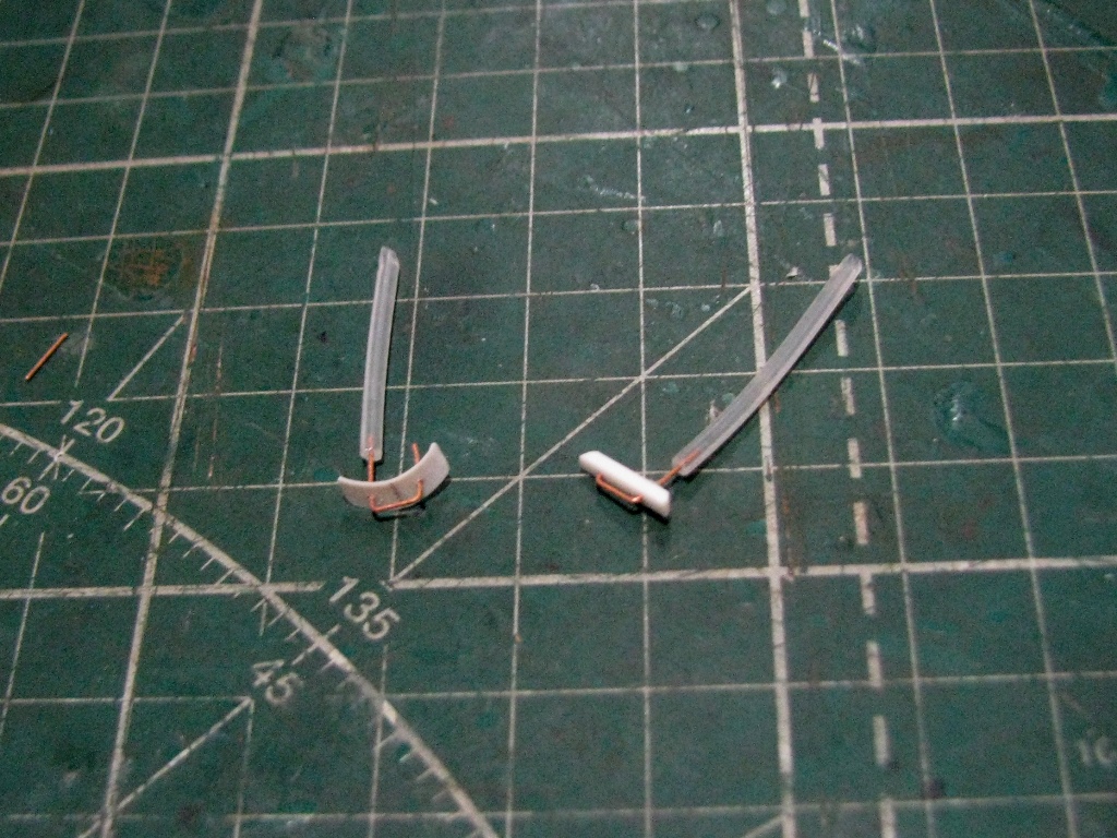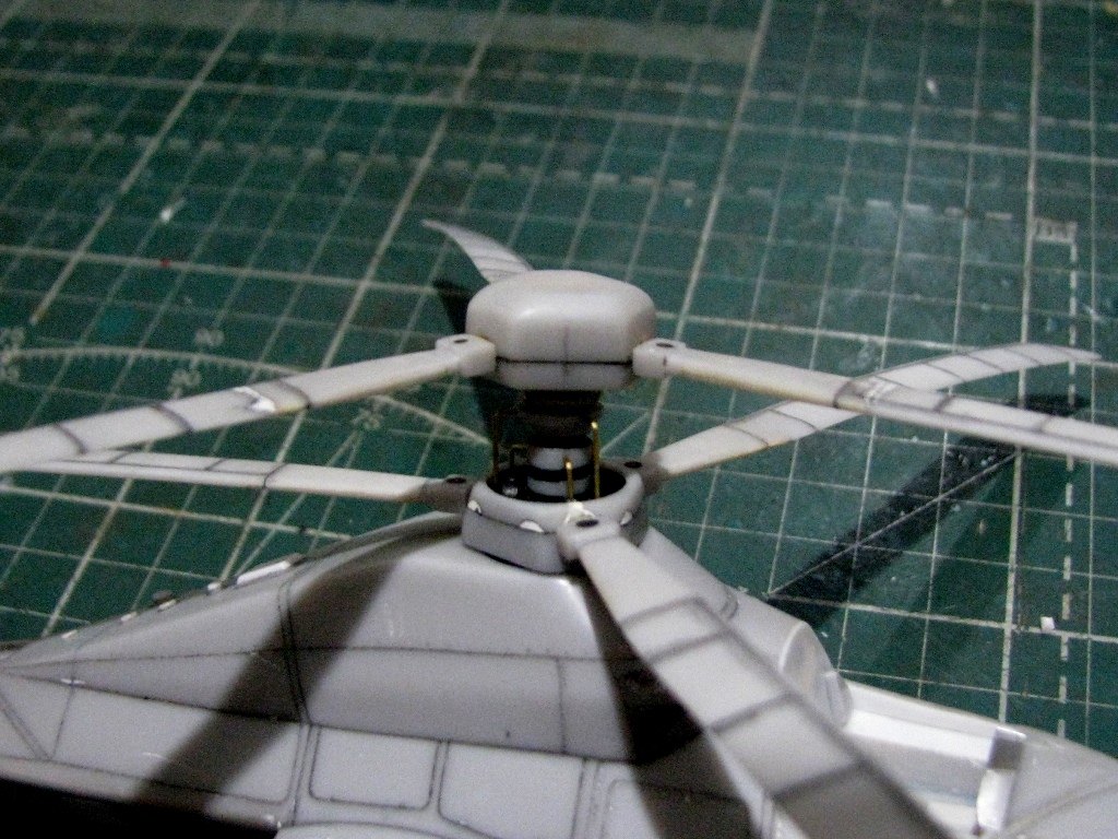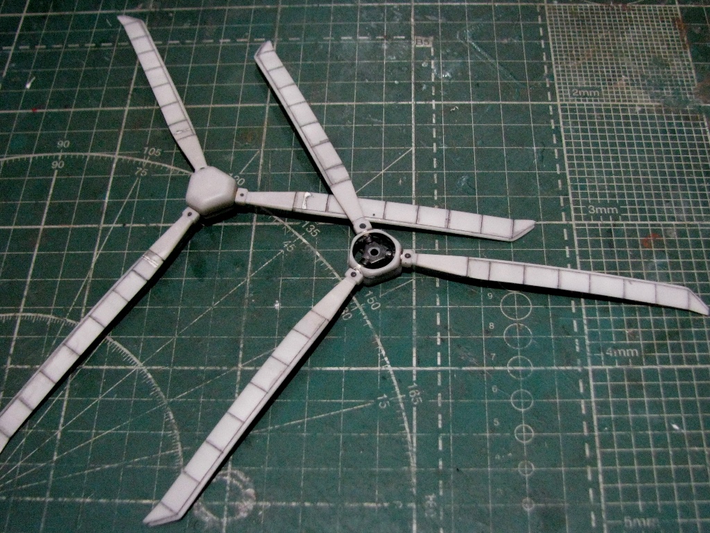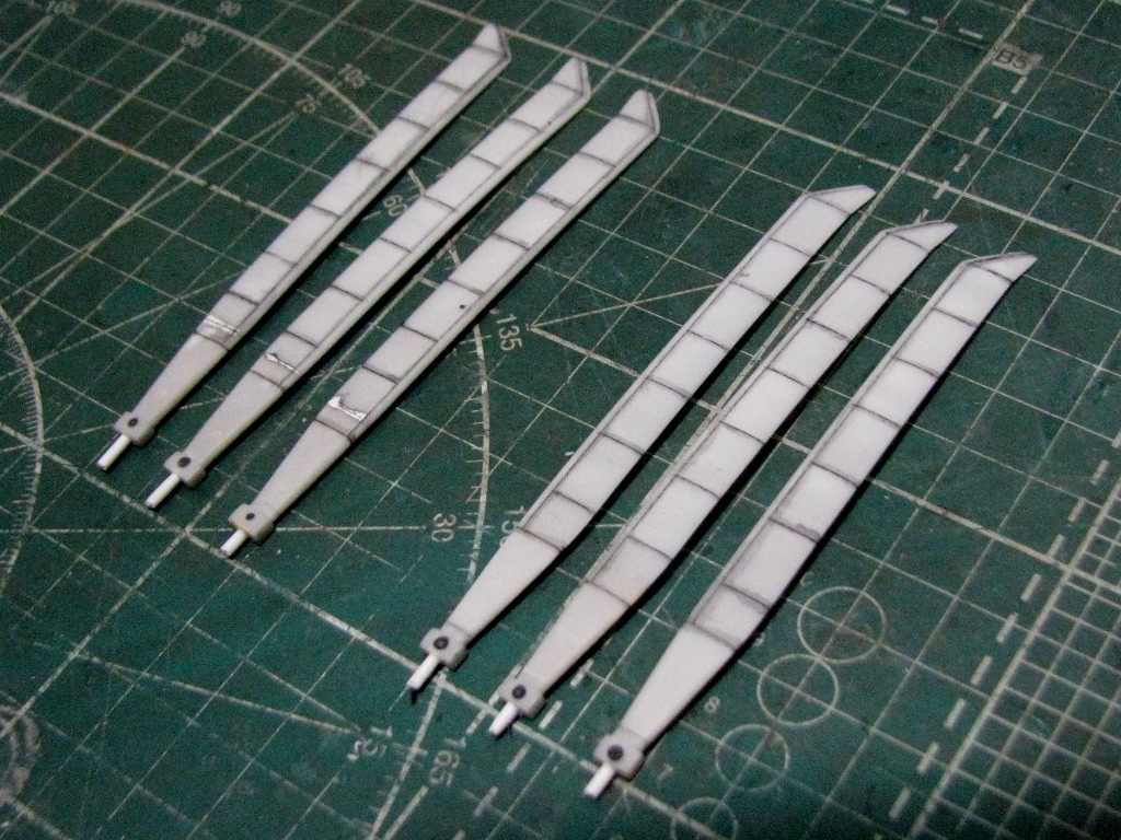 Сточил комли лопастей до приемлемой толщины. Расшил и имитировал провис.