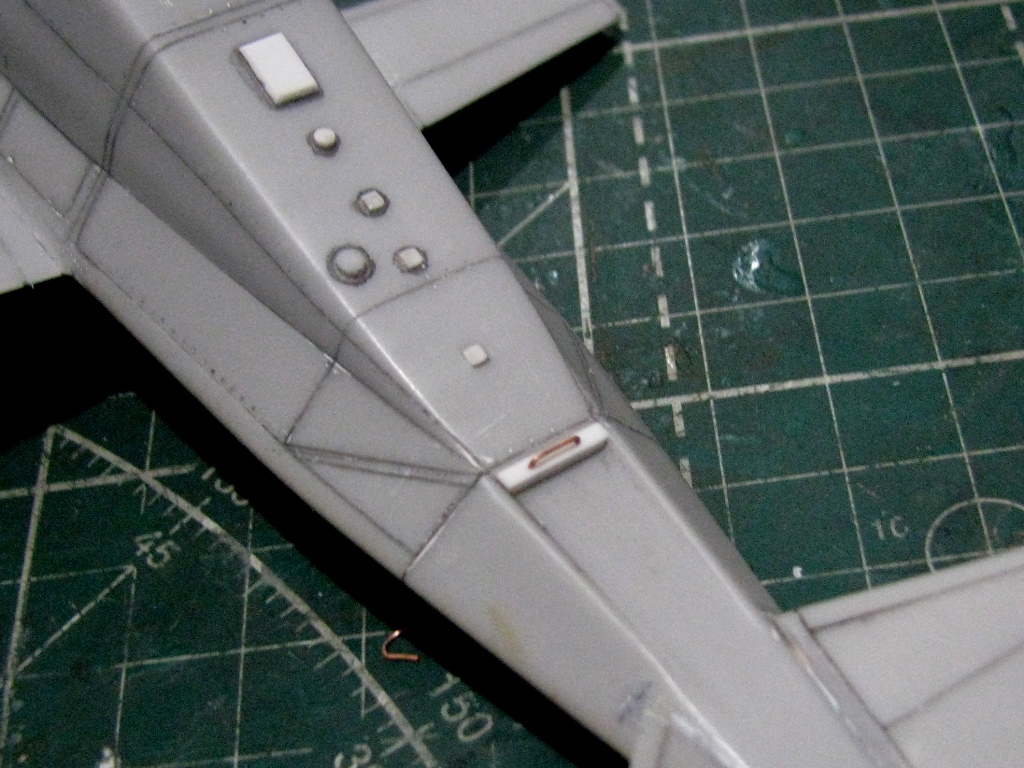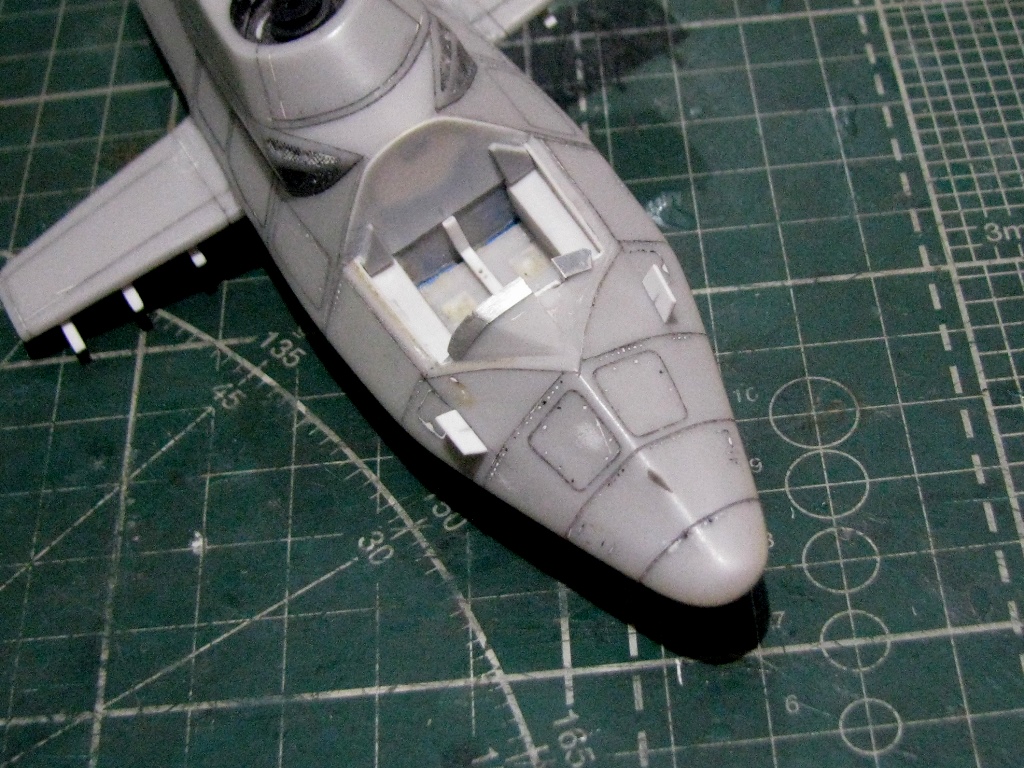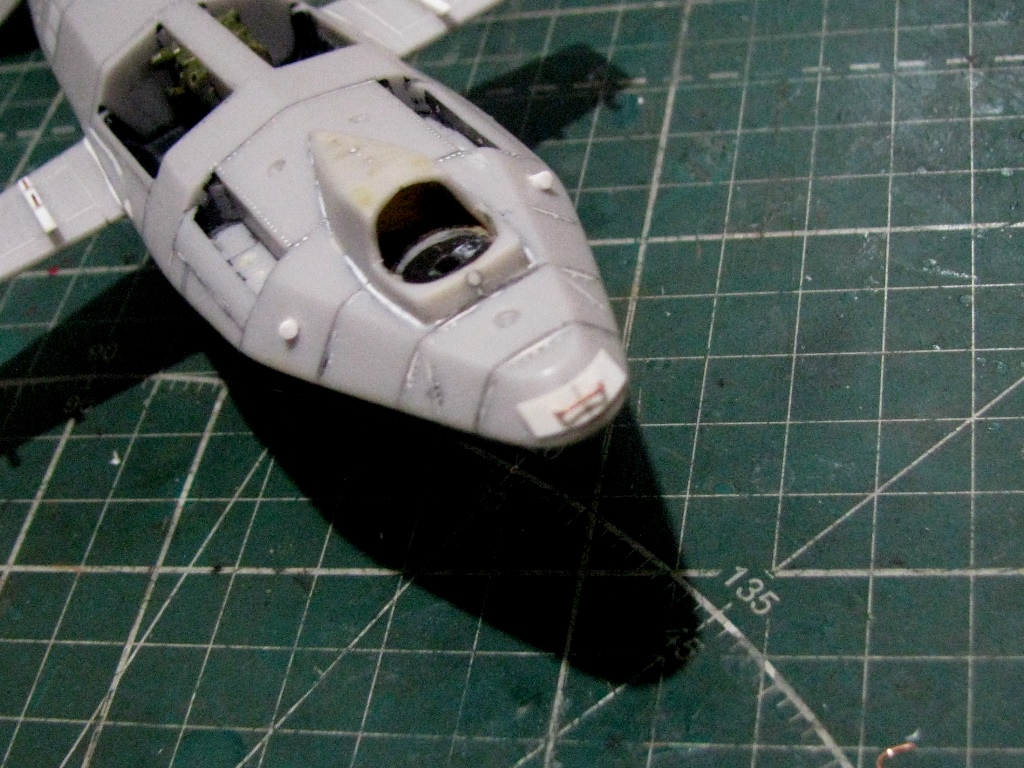 Посмотрев стройку КА-58 у Игоря Скурихина, понял чего не хватало - расшил горб, и обозначил ВСУ. Заглушка на входное устройство и выходное устройство (антенна) с заглушкой.