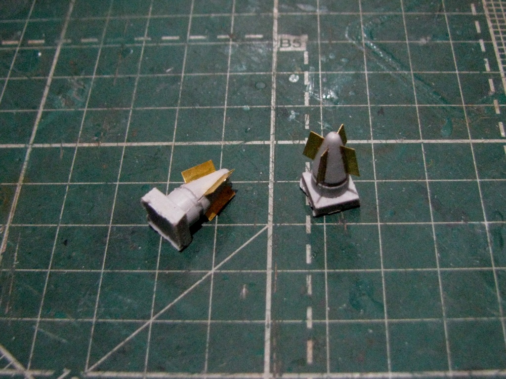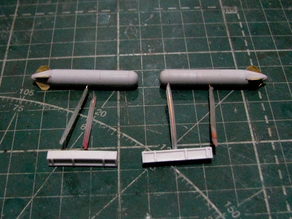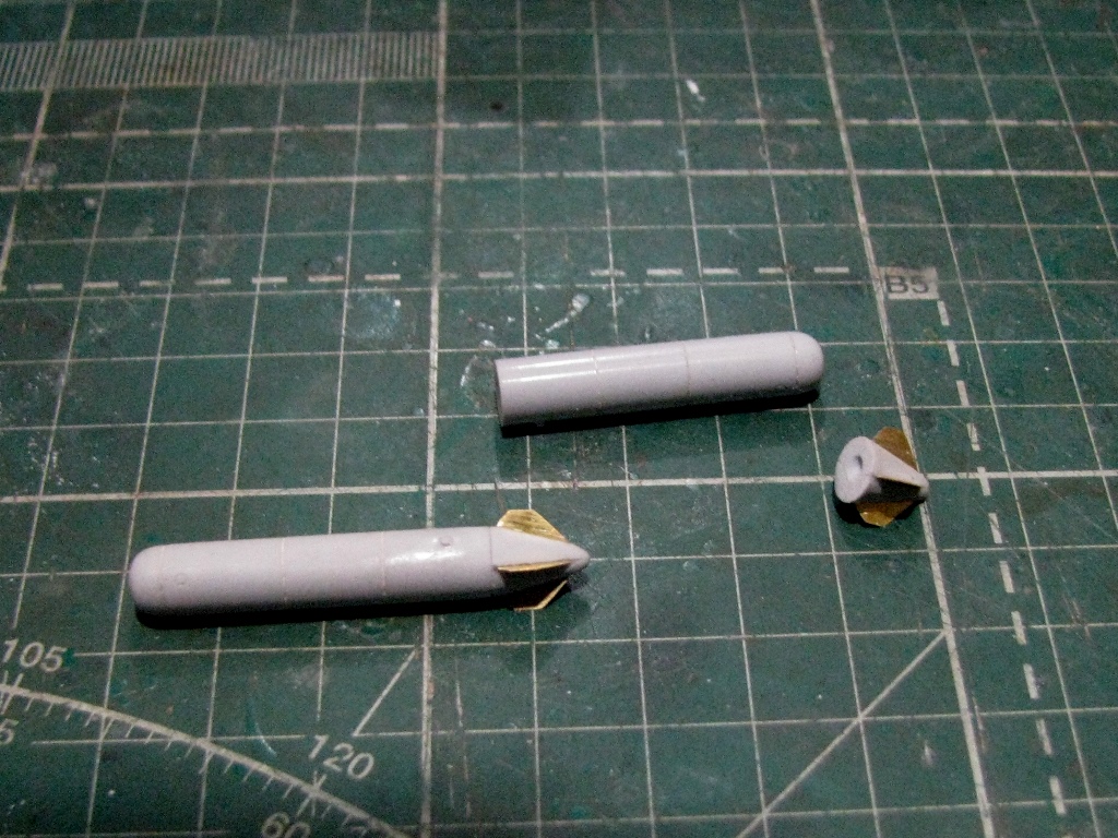 Нашел в запасах смолу от PROP&JET ПТБ-450. С латуни сделал стабилизаторы. Поставлю также ящики с НАР НАР С-8КОМ.
