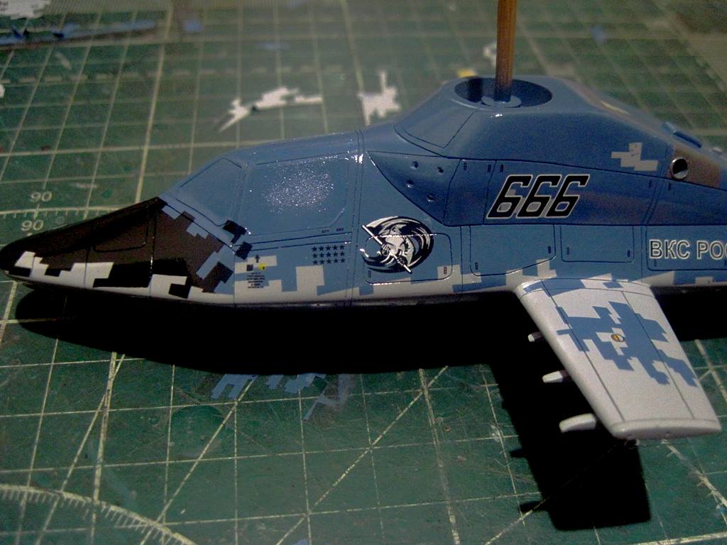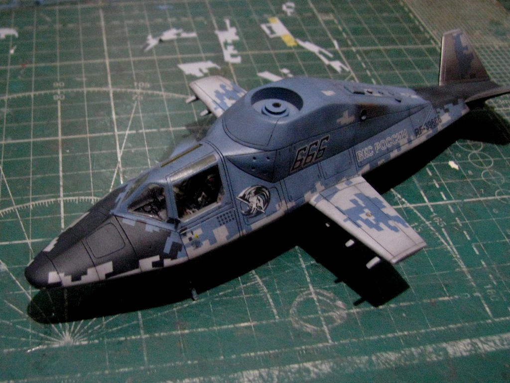 Сделал смывку, обгадинг, матовый высветляющий лак, постшейдинг. Вертолет получился рабочим.