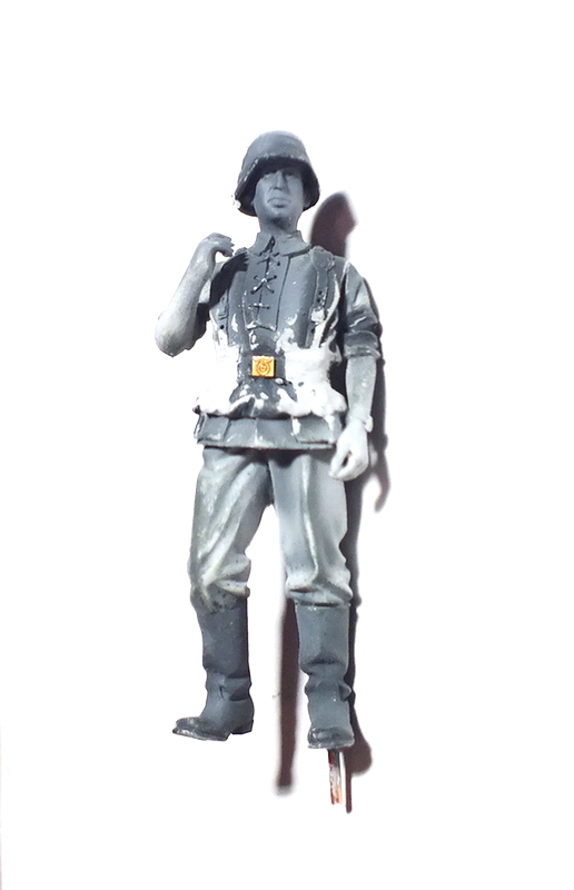 Попытался оторвать подсумки,а потом вспомнил,что они идут одной деталью с туловищем.Пришлось их измельчать ножом и остатки соскабливать.Ну и изх эпоксилина вылепил плдсумки для магазинов ППШ.После высыхания их доведу.