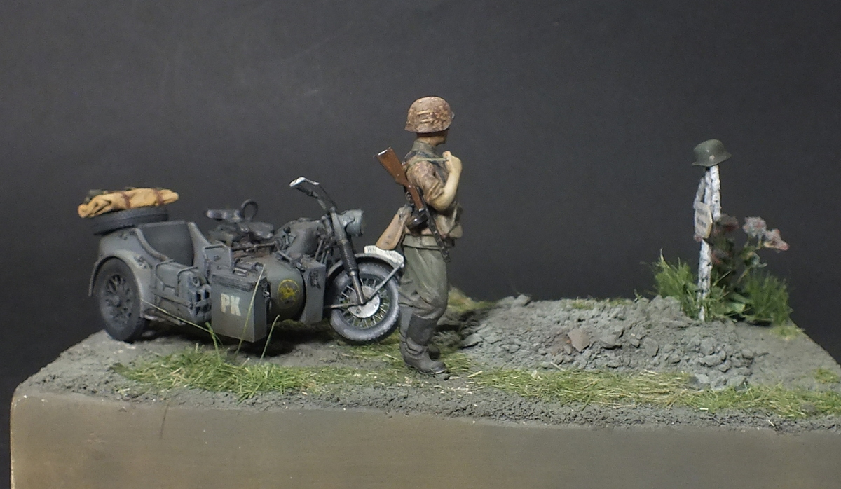 Ну вот кажется и все.Установил на место фигурку и на этом работу над диорамой считаю законченной.На большее моих способностей пока не хватает.Подумаю еще на счет рамки.А пока-ГОТОВО.