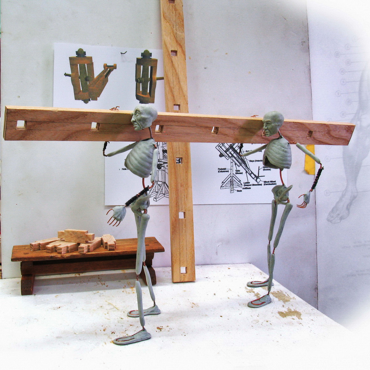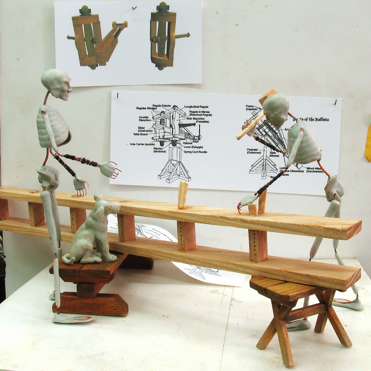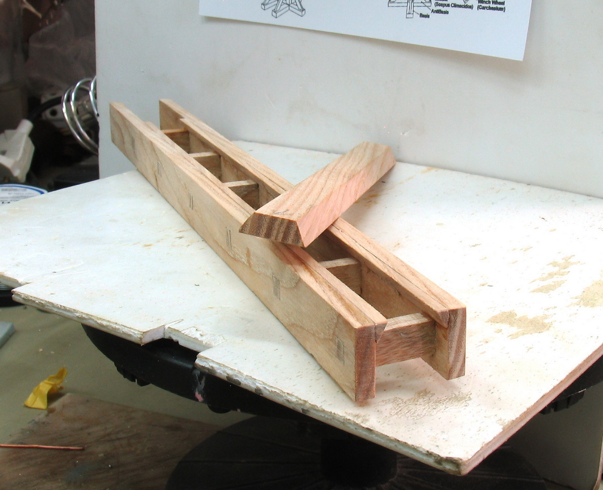 Начал делать лестницу. Это деталь баллисты. Впоследствии она будет крепиться к столу (покажу позже). Внутри лестницы будет перемещаться затвор, прямо по поперечинам. Сзади будет ворот.. И все это будет располагаться между торсионными рамами..