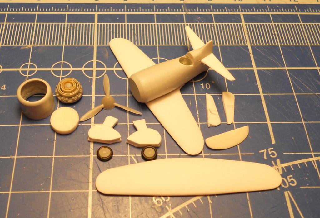 Из части, вышеупомянутой, "палочки" получился капот. Двигатель от какой-то модели в 1/144 подарил коллега из Питера. Кольцевой радиатор - самодельный. Оставшаяся часть "палочки" тоже пойдёт в дело и станет передней частью фюзеляжа.