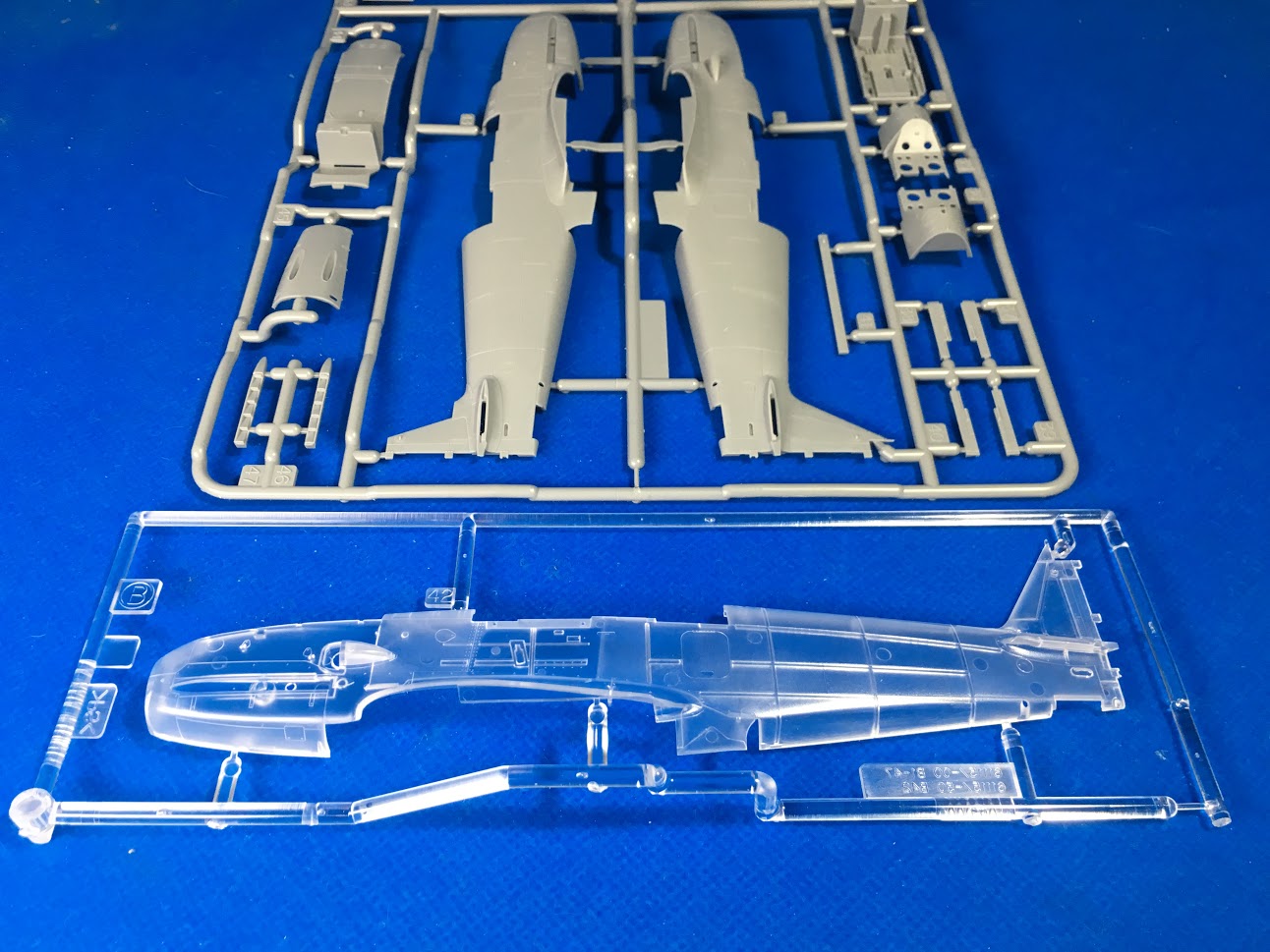 По поводу использования прозрачной половины фюзеляжа у меня появились сомнения. Пластик не совсем прозрачный, деталей будет не видно. Так, общее представление о расположении внутренностей, не более. Что-то типа "рентгена" в ВарТандере. При этом если и делать прозрачным, то не целиком, а только с "окошками" в районе кокпита и движка. Сзади и снизу нечего показывать.