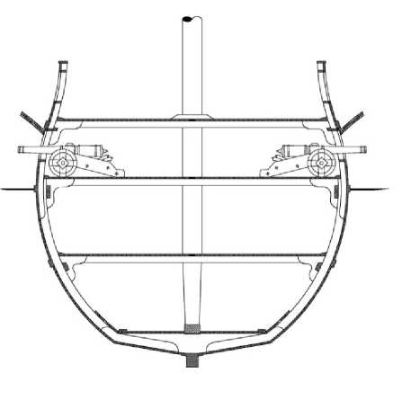 Нижняя орудийная палубы расположена выше ватерлинии на 2,2мм (в масштабе 1:1 ~14см). Это размерение взято с потолка, и никакой доказательной базой его подкрепить не могу. Разве что приведенной ниже схемой.