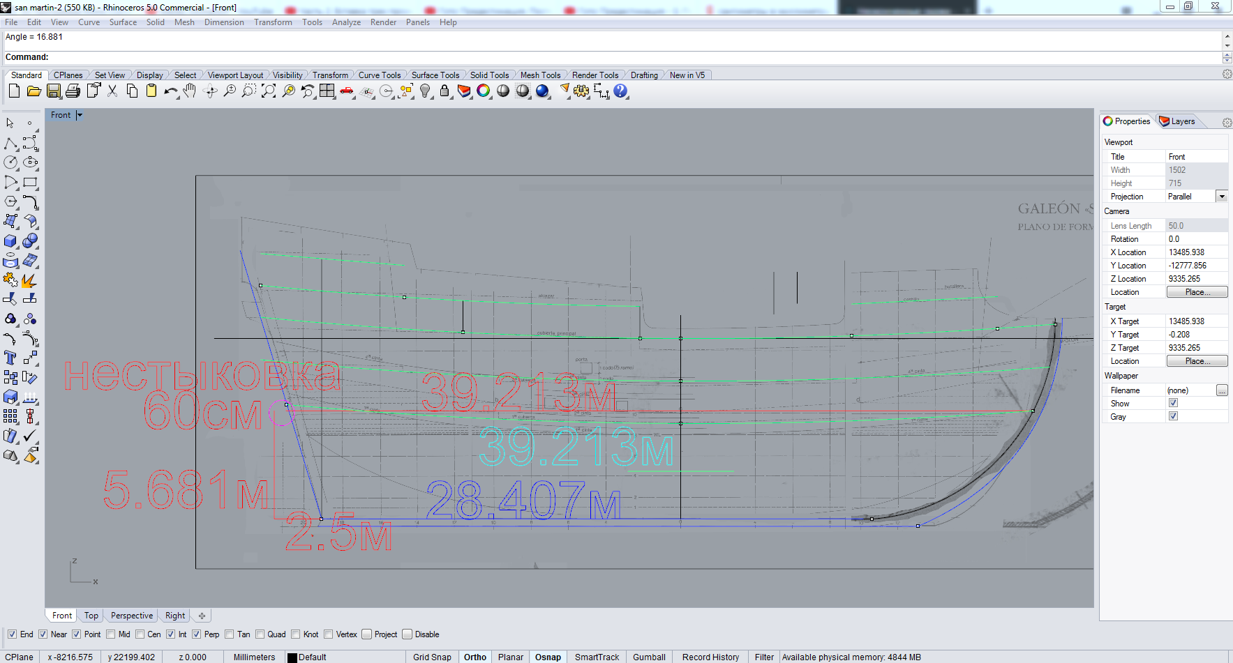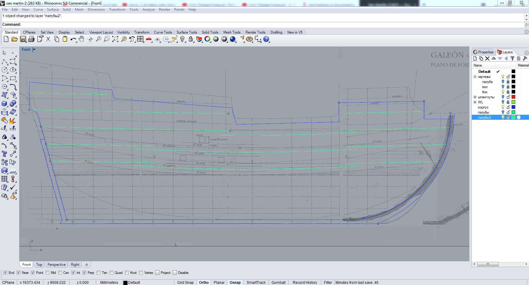Восстановил все пропавшие вчера данные, привел седловатость в соответствие с нормами. Ступени на палубах будут, но пока корабль в масштабе 1:1 их рисовать неудобно - потом им сделаю высоту в 4мм (толщина фанеры для каркаса модели). При этом угол наклона ахтерштевня "вогнал" в допустимые значения - он составляет 16,881 градус (видно в левом верхнем углу картинки)
