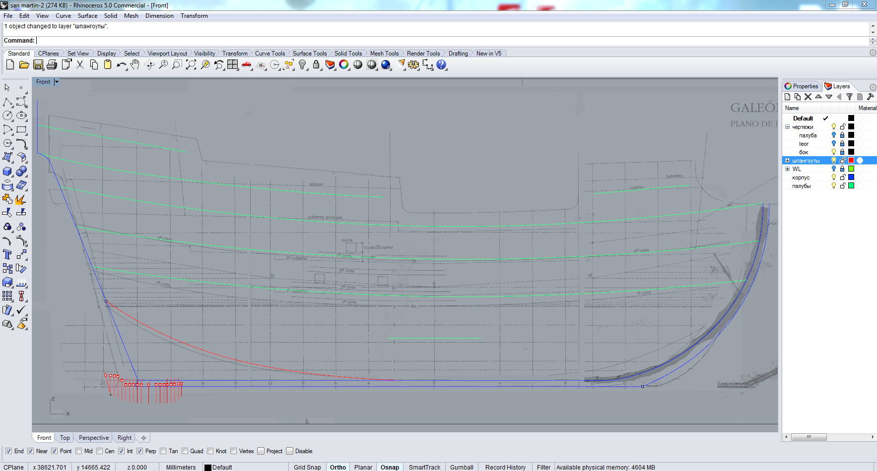 Красная клякса в нижнем левом углу показывает отношение модели к реальному кораблю. Сейчас буду пробовать срастить это все в единое целое...