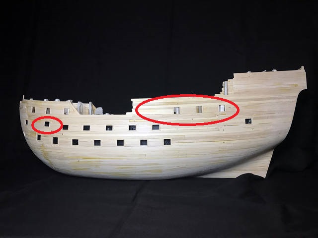 Ты имеешь в виду угол наклона транца? Так я ж его менял еще на этапе проектирования корпуса - приводил в соответствие с пропорциями кораблестроения тех времен. С портами у меня вообще отдельная песня была - раз 10 их расположение перерисовывал пока получилось более-менее привести к соответствию с картиной и при этом вогнать в размеры Мондфельда (как размер портов, так и расстояние между ними). К сожалению, реек на все задуманное не хватило - окончательный вид имеют только порты нижней орудийной палубы. Вместе с чистовой буду докупать еще реек липы для завершения работ.