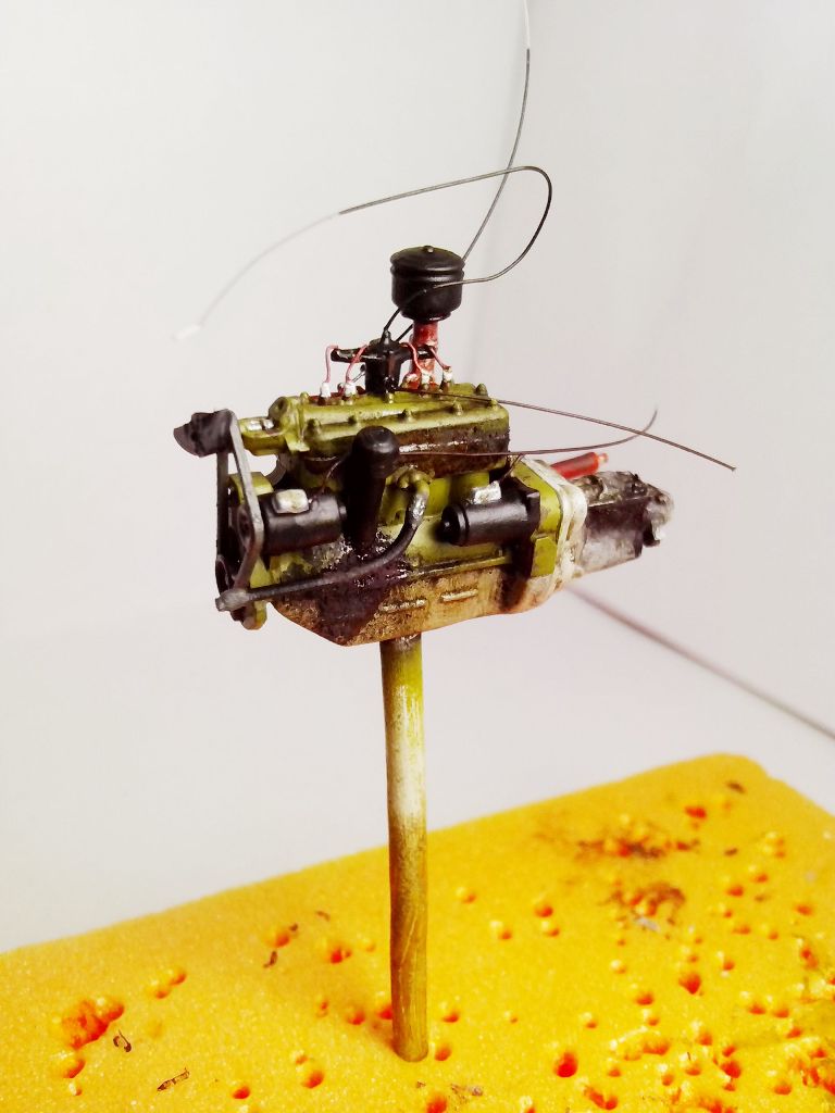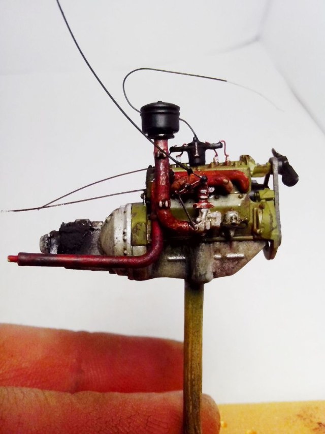 Красивый движок.Можно еще на коллекоре и приемной трубе темно ржавым и черным пигментом пройти.