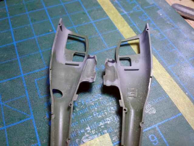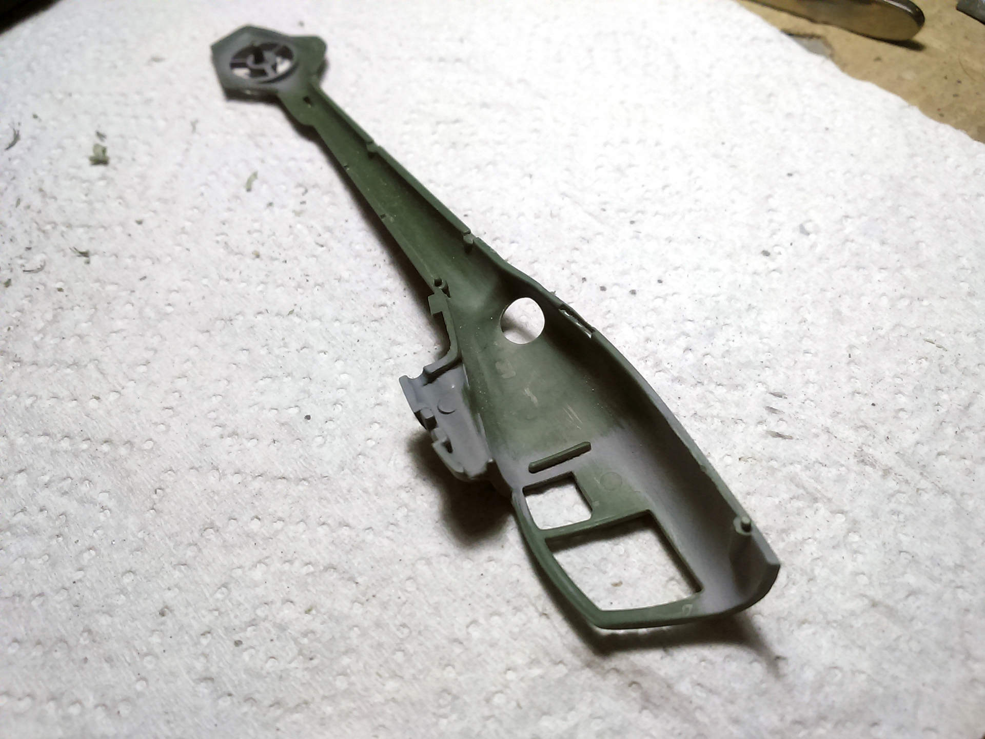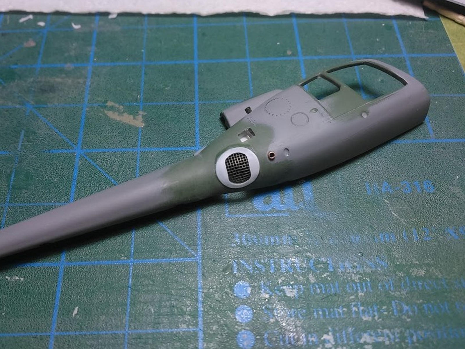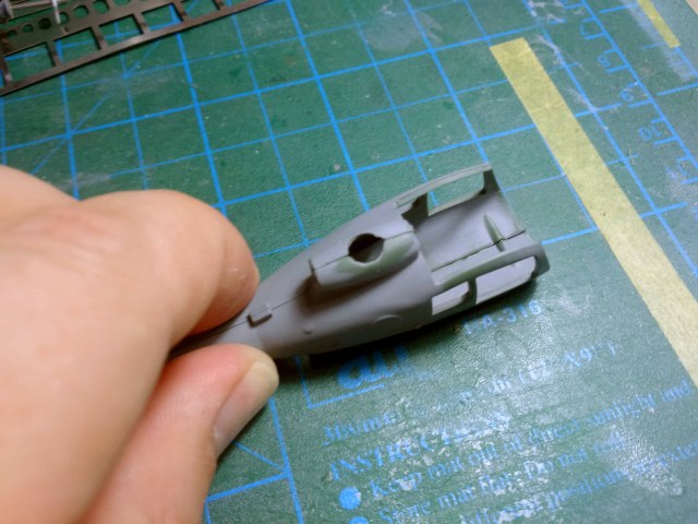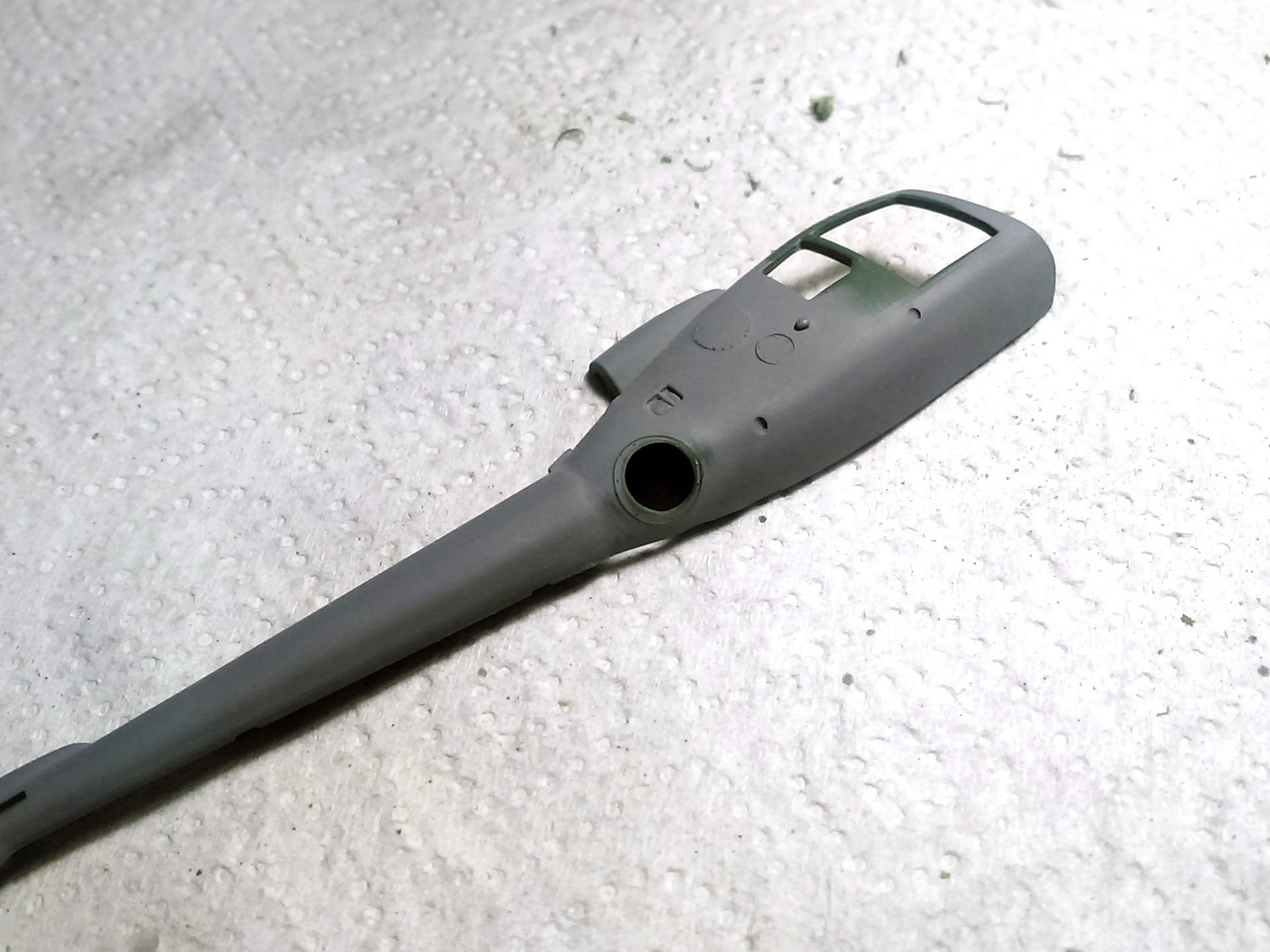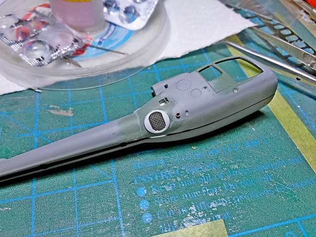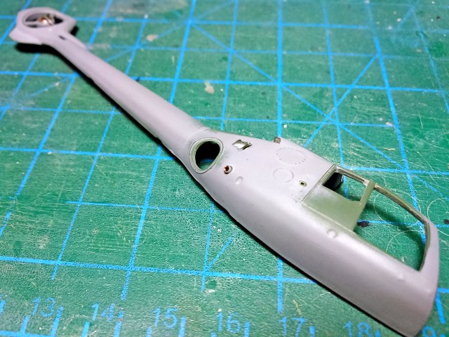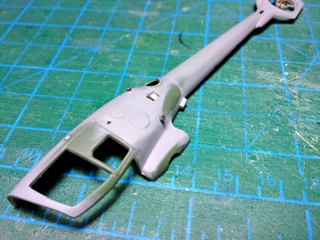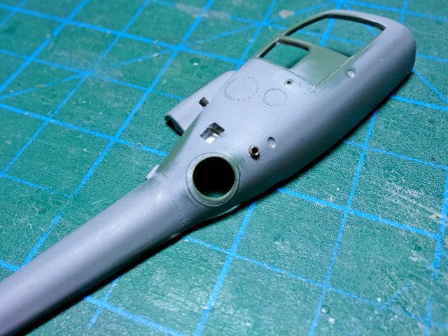 Зачистил внутренности фюзеля, убрал ненужные упоры под двери, сделал выборку с внутренней стороны под сетку, просверлил отверстие под сетку.
