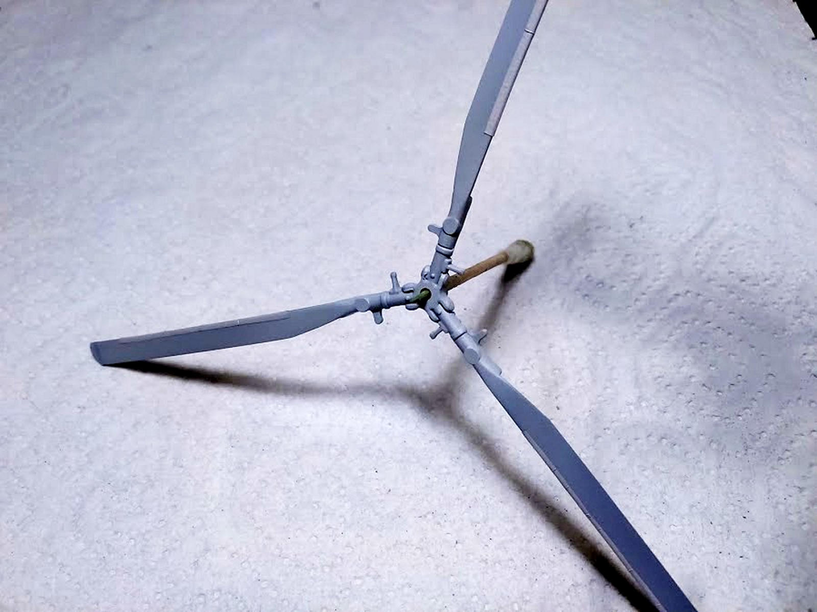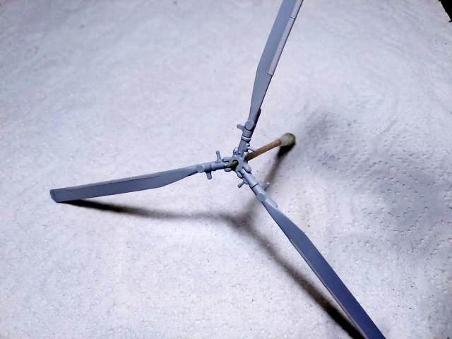 Лопасти на модели отлиты не верно в комлевой части ( в месте крепления к ВНВ( втулка несущего винта). получается, что ЛНВ лежит на втулке, а должна входить в неё. посмотри мою Газёл. я переделывал. Да и сама ВНВ переразмерена. если не срезать, то лопасти достают до хвоста.