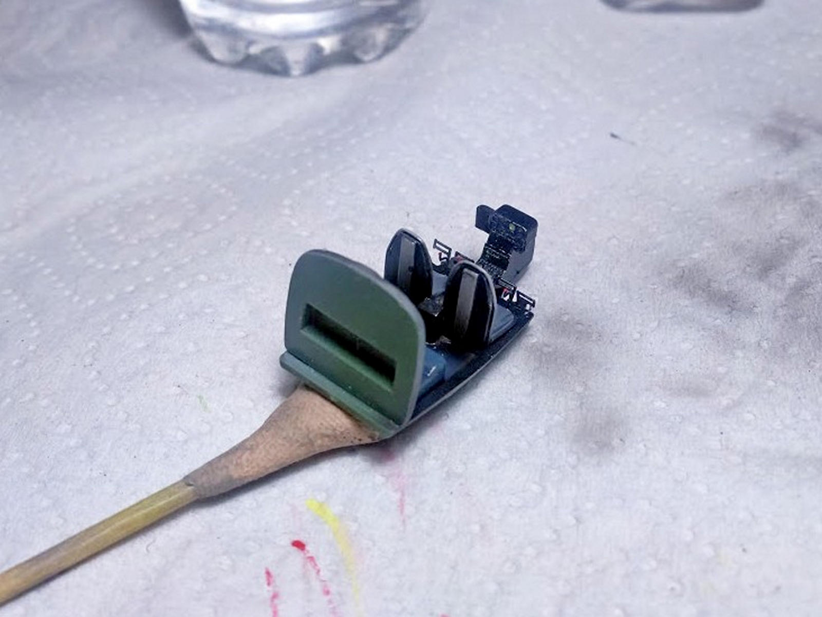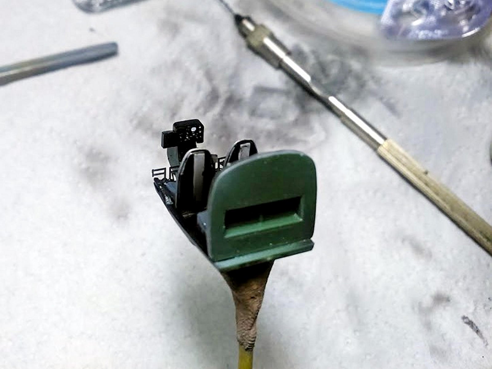 Самая большая проблема для меня - это сделать прозрачный наплыв на верхнем левом остеклении. Давить не хотелось так как я не владею этим приёмом, решил выпилить из кусочка оргстекла.