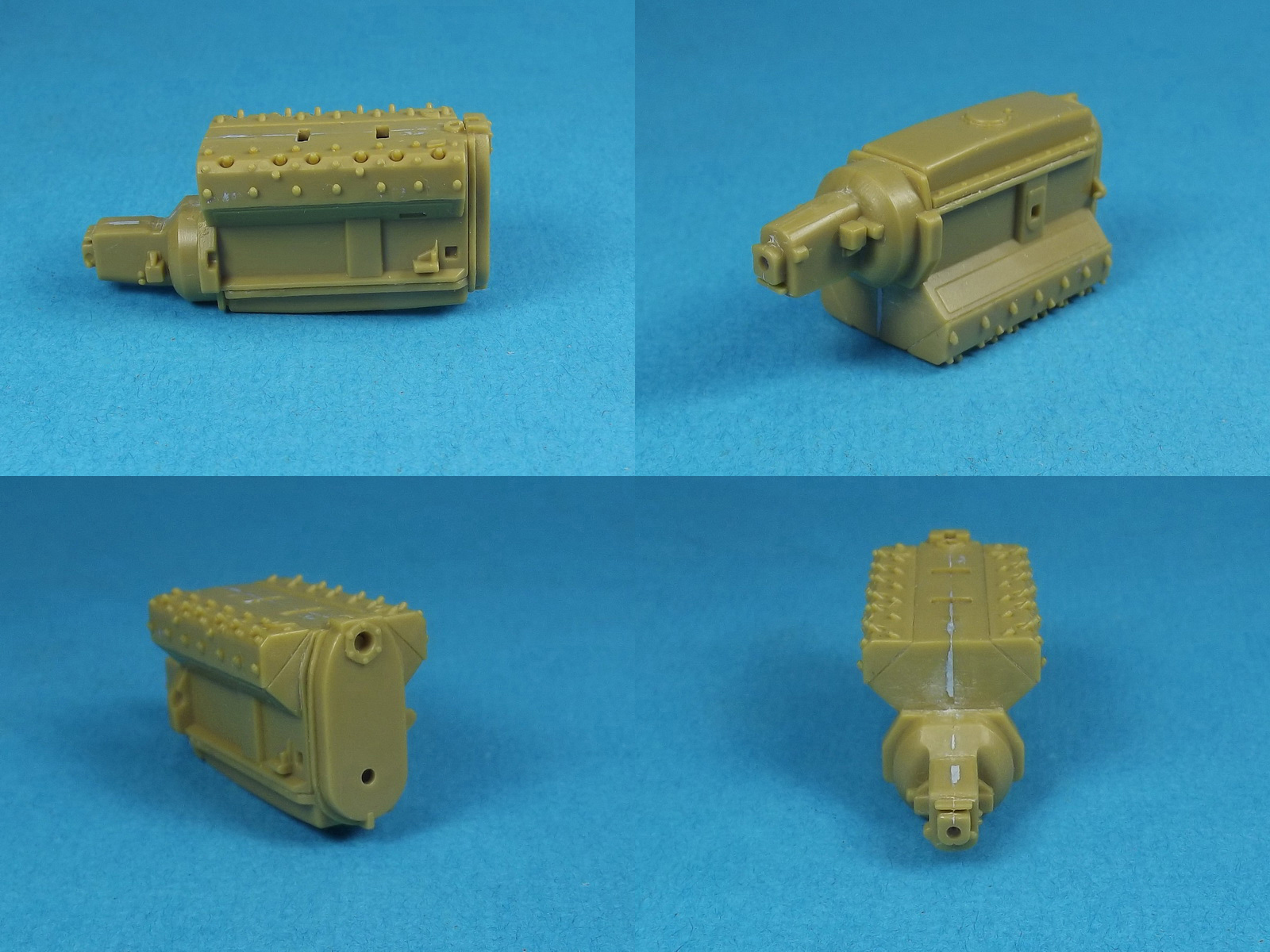 ...Обработаны и склеены. Вот такая вот "тушка" двигателя получилась. Без мелкой деталировки смотрится пока убого, но буду постепенно обвешивать этот движок доп.элементами из коробки, а разные шланги да провода буду делать сам.