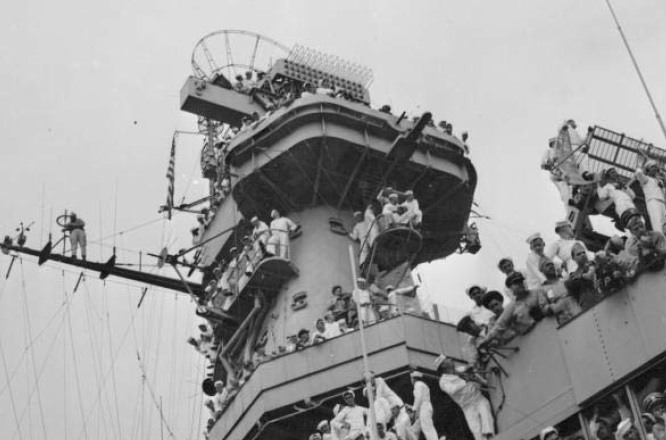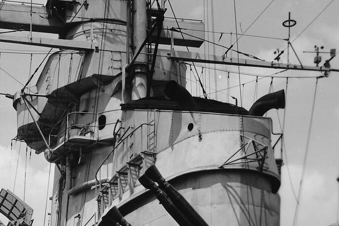 @Иван Ильин, посмотрите вот эту фото (была в этой теме, но тут разрешение качественней).. На мой взгляд, тут вообще, на первой трубе ( к носу) видны две пары этих труб, смотрящих как на прввый, так и на левый борт. А вот на второй трубе, опять же, на мой взгляд, пара смотрит на прпвый борт, а на левый одиночная труба :
