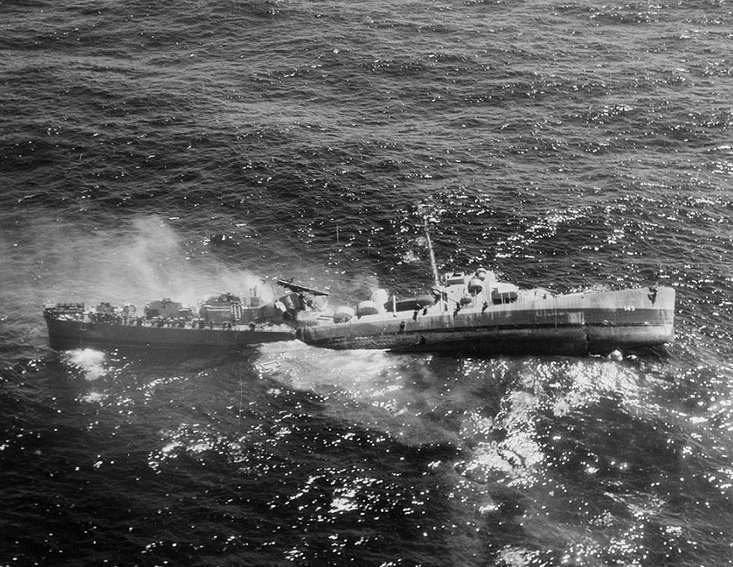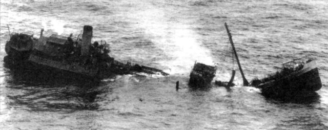 Американский эскортный эсминец USS" Fiske" DE-143, торпедированный немецкой подводной лодкой U-804 к северу от Азорских островов.