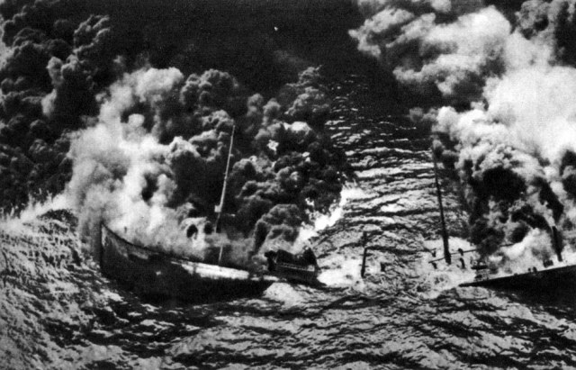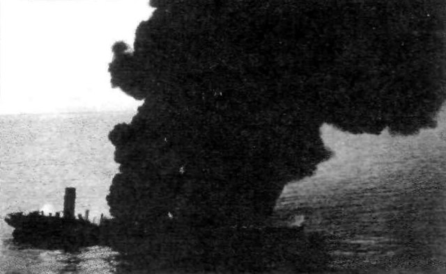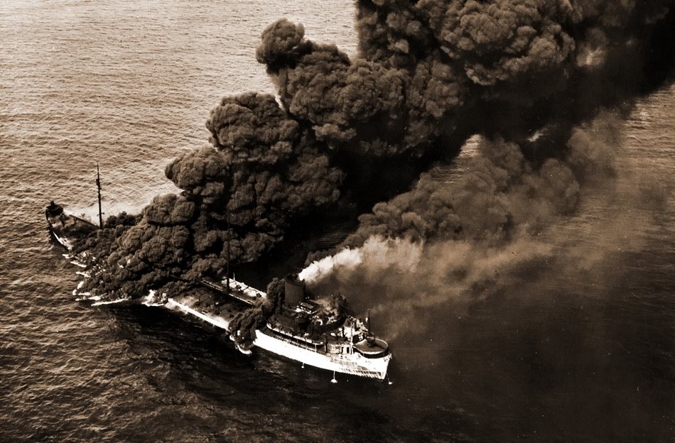 Гибель американского танкера, атакованного немецкой подводной лодкой. Март 1942 год.