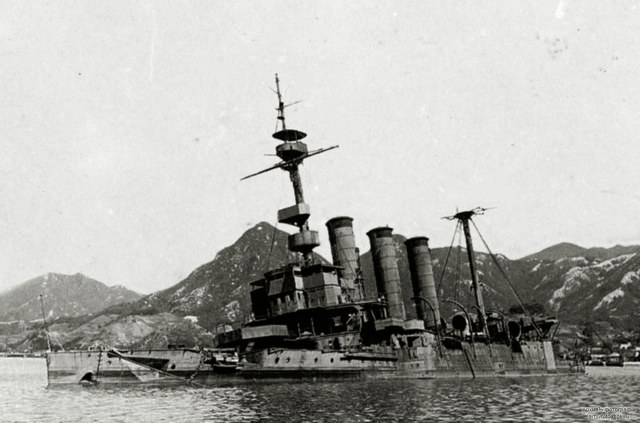 Японский броненосный крейсер "Ивате" класса "Идзумо". Этот крейсер принимал участие в Цусимском сражении.