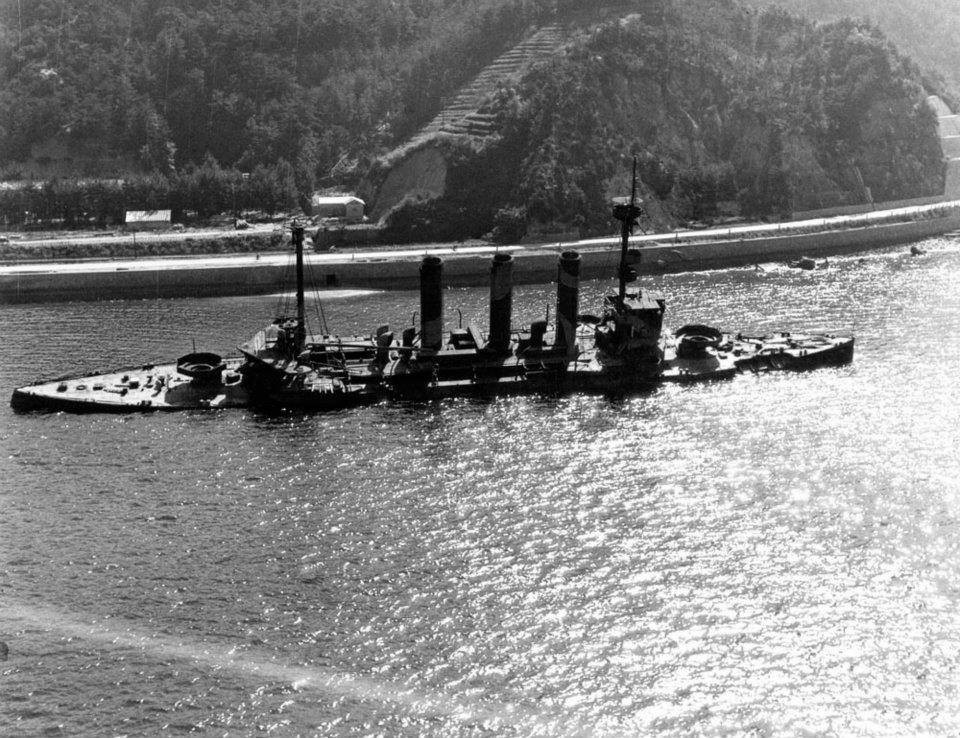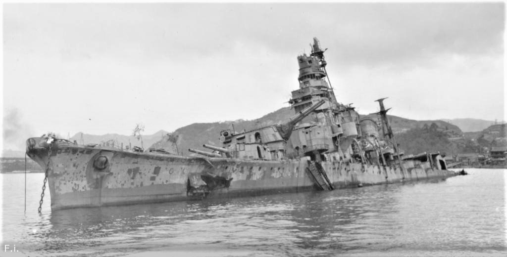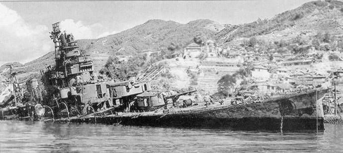 Японский тяжелый крейсер "Аоbа", потопленный американской авиацией в Куре.
