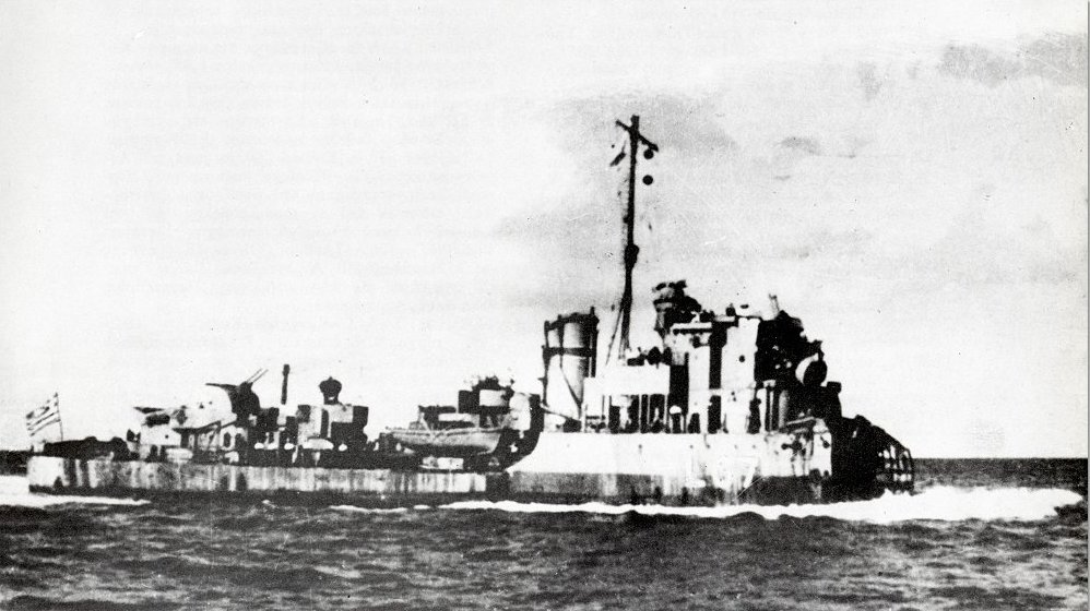 Подорвавшийся на мине греческий эсминец "Адриас".