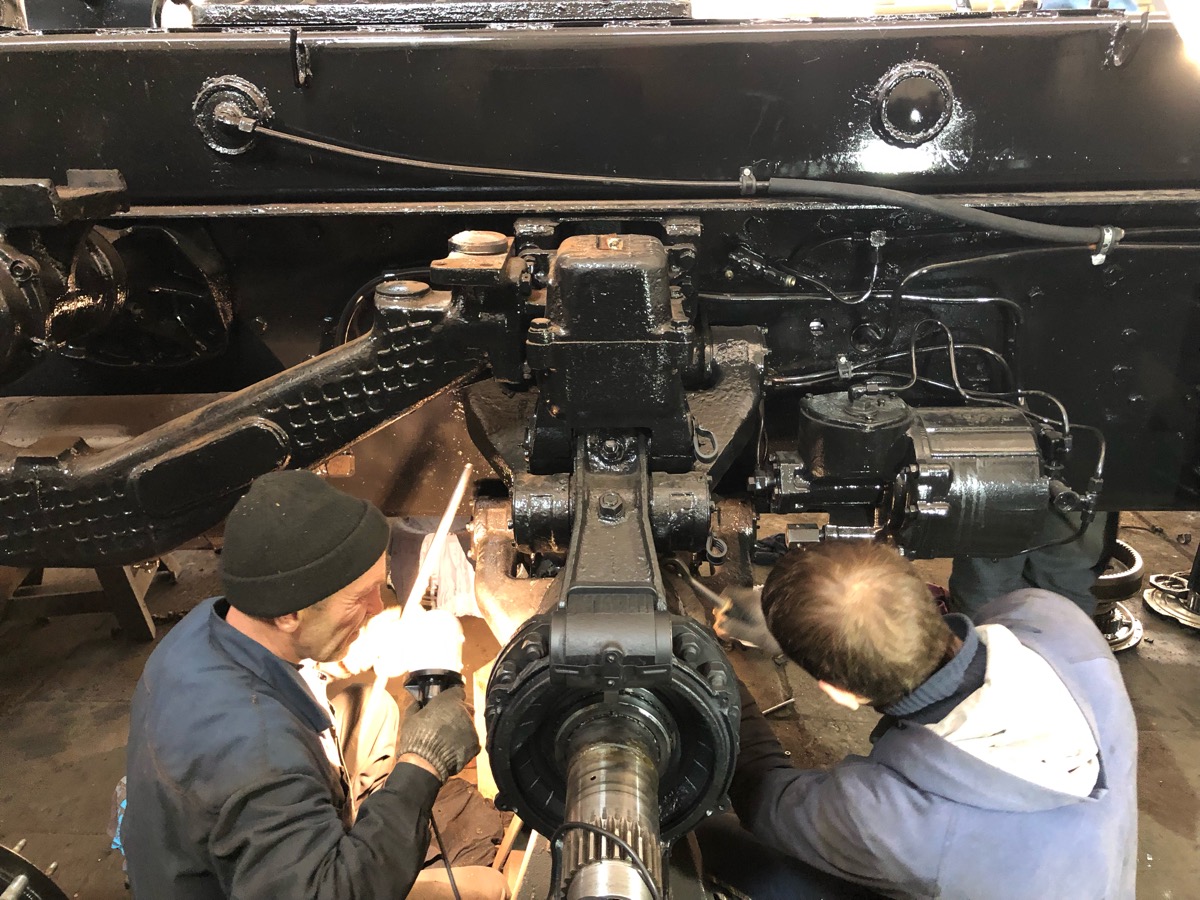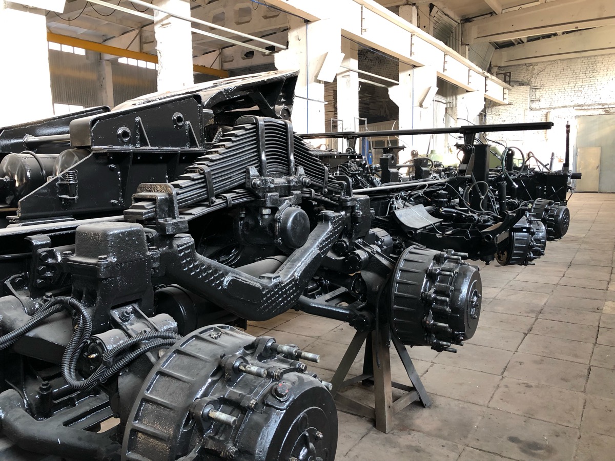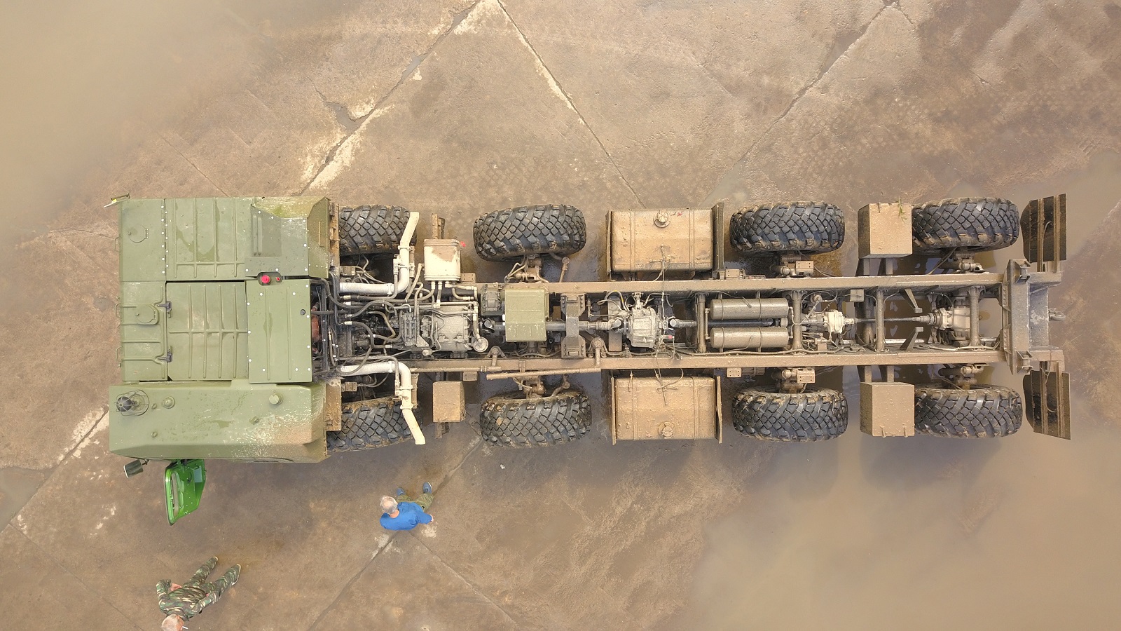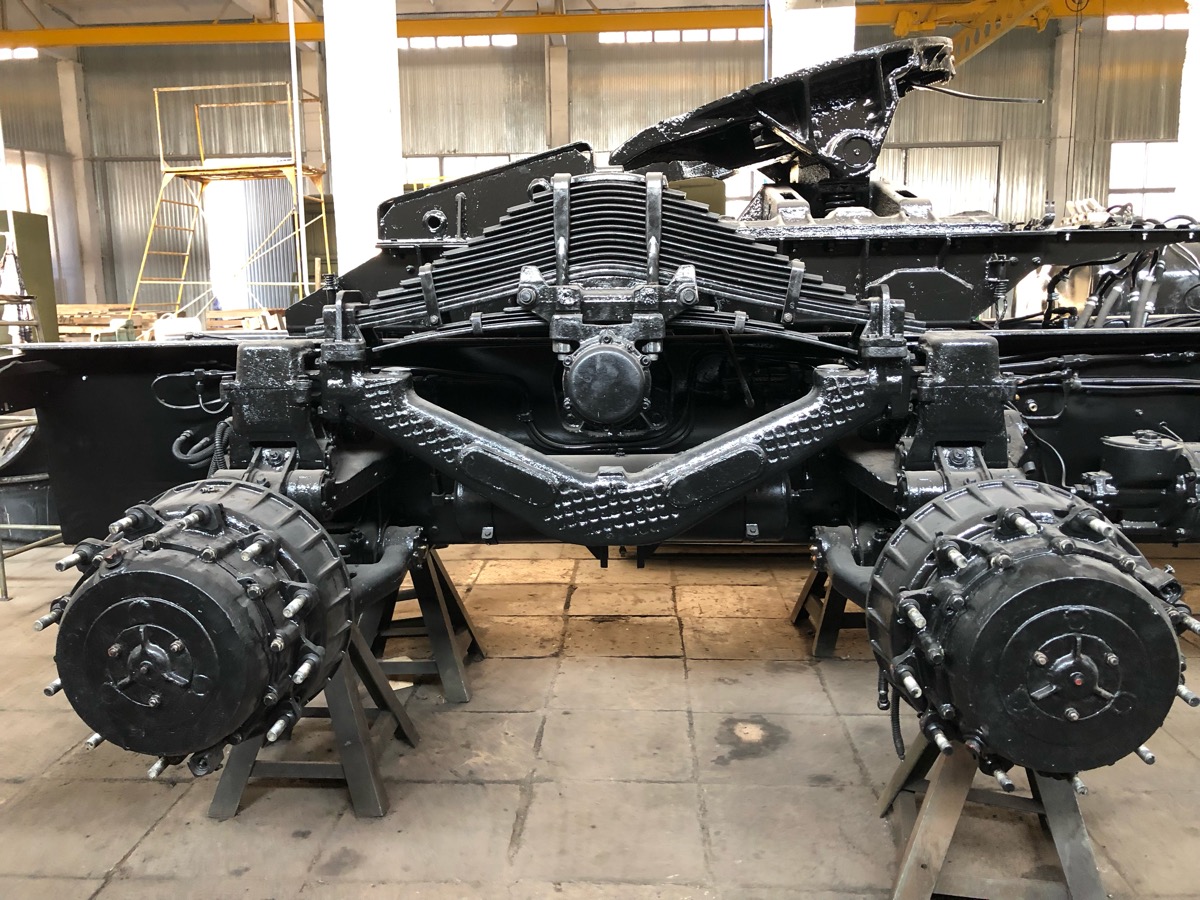 Очень интересен вид сверху на раму, раздатку, промежуточные коробки и шланги тормозной системы.