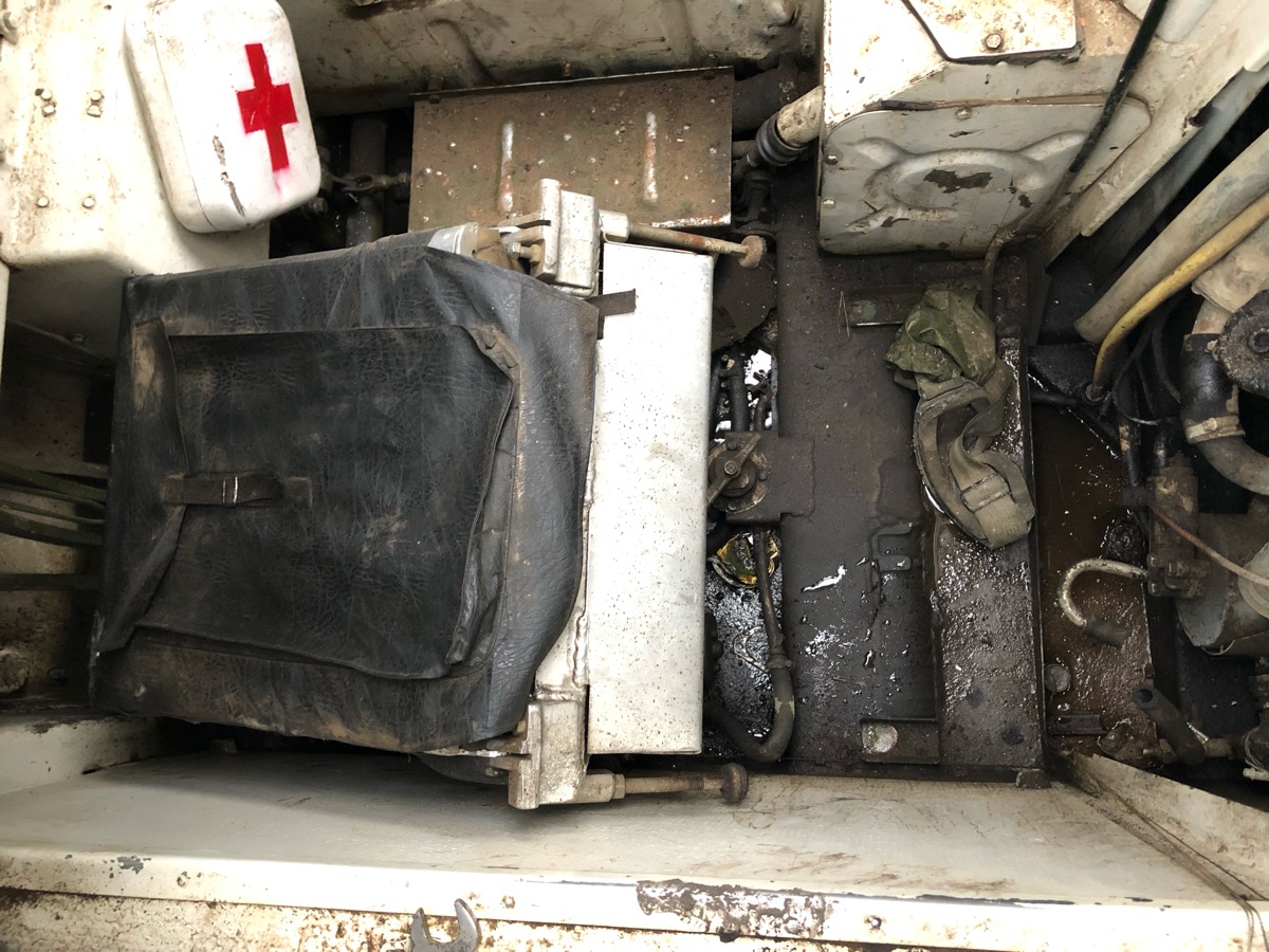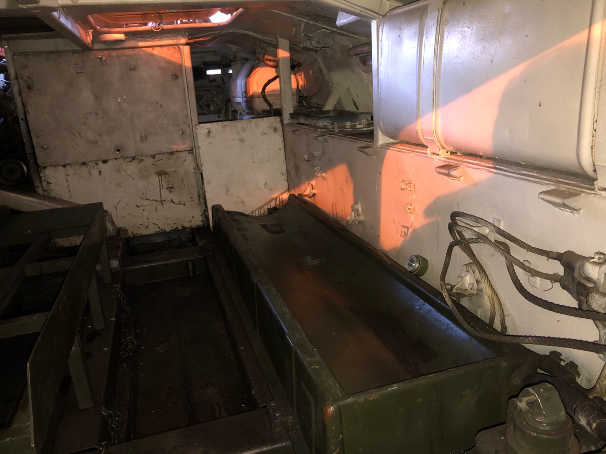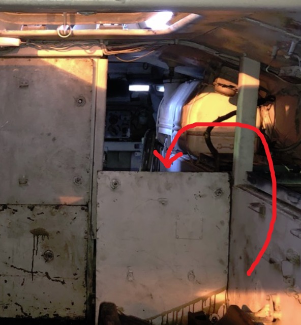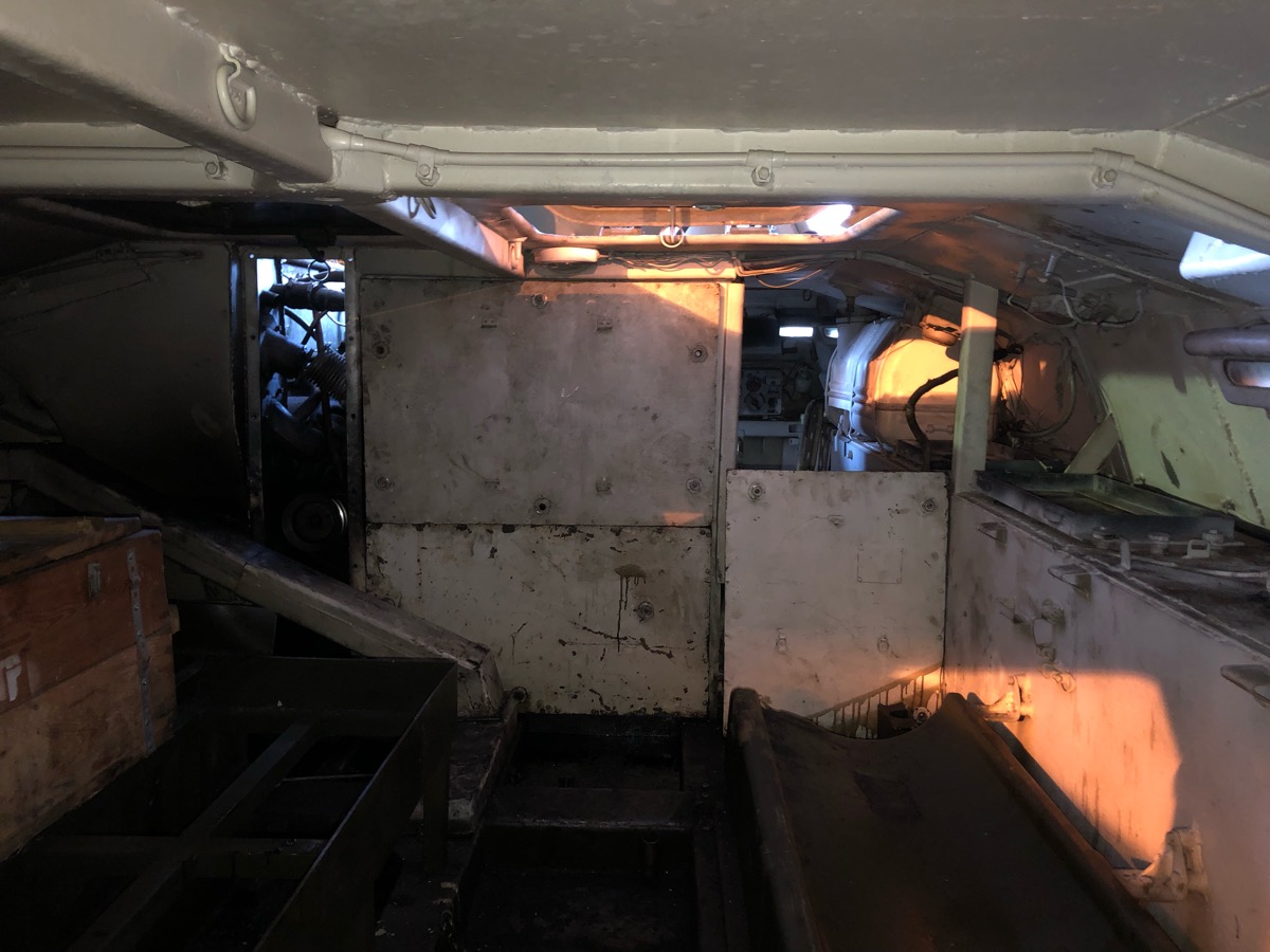 Не это. А вооон там, за перегородкой. Как раз тот коридорчик что идет из отделения управления мимо двигателя в десантное отделение. Там должно быть 2 раскладных сидения. Вот мне и интересно как они и где именно они там располагаются и как раскладываются.