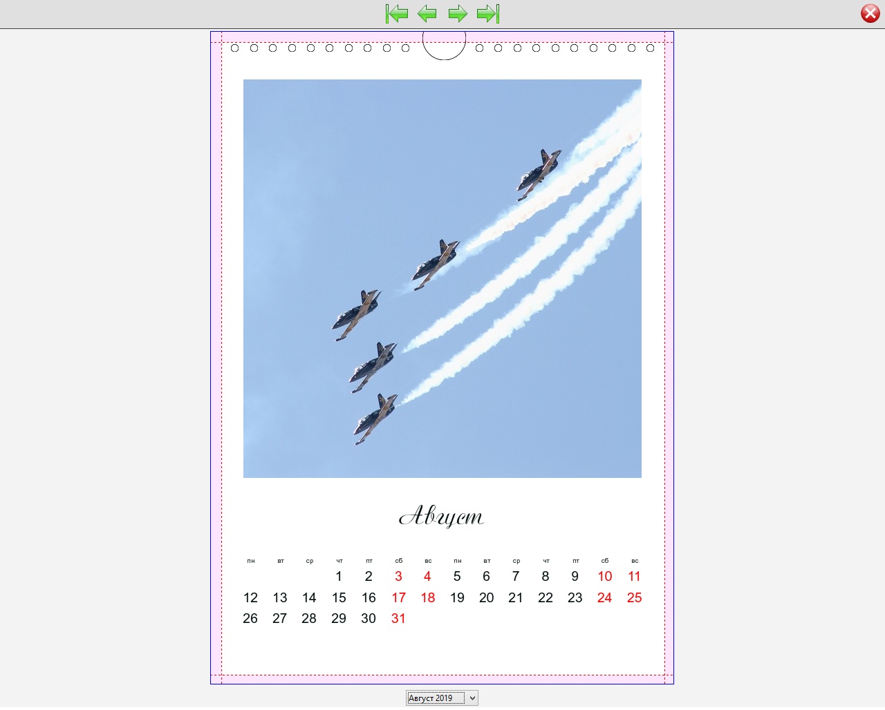 Есть возможность напечатать настенный перекидной календарь 21х30см авиационной тематики. Развороты прилагаю.