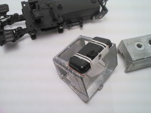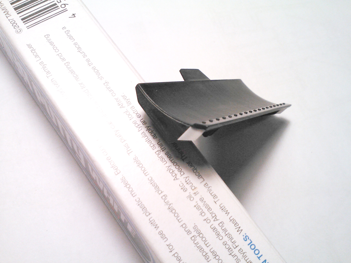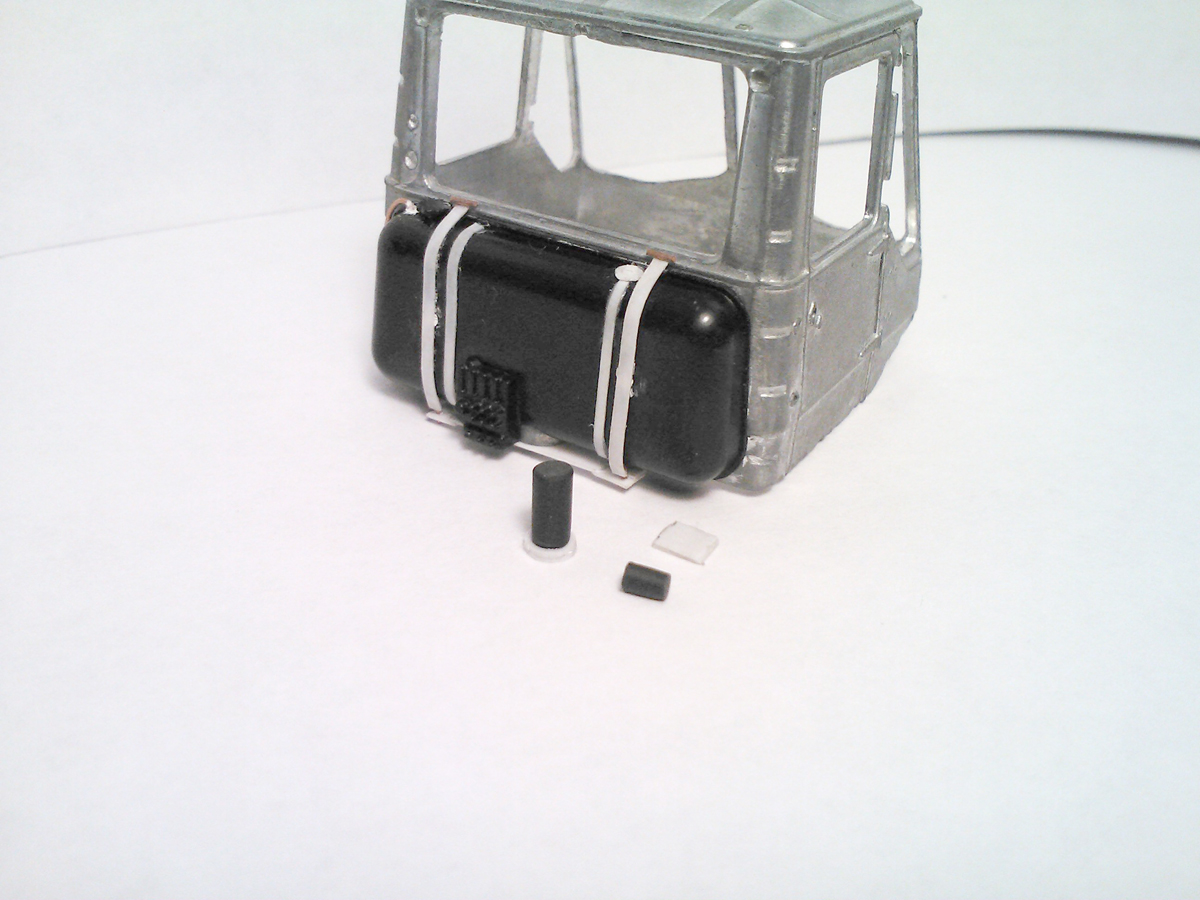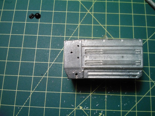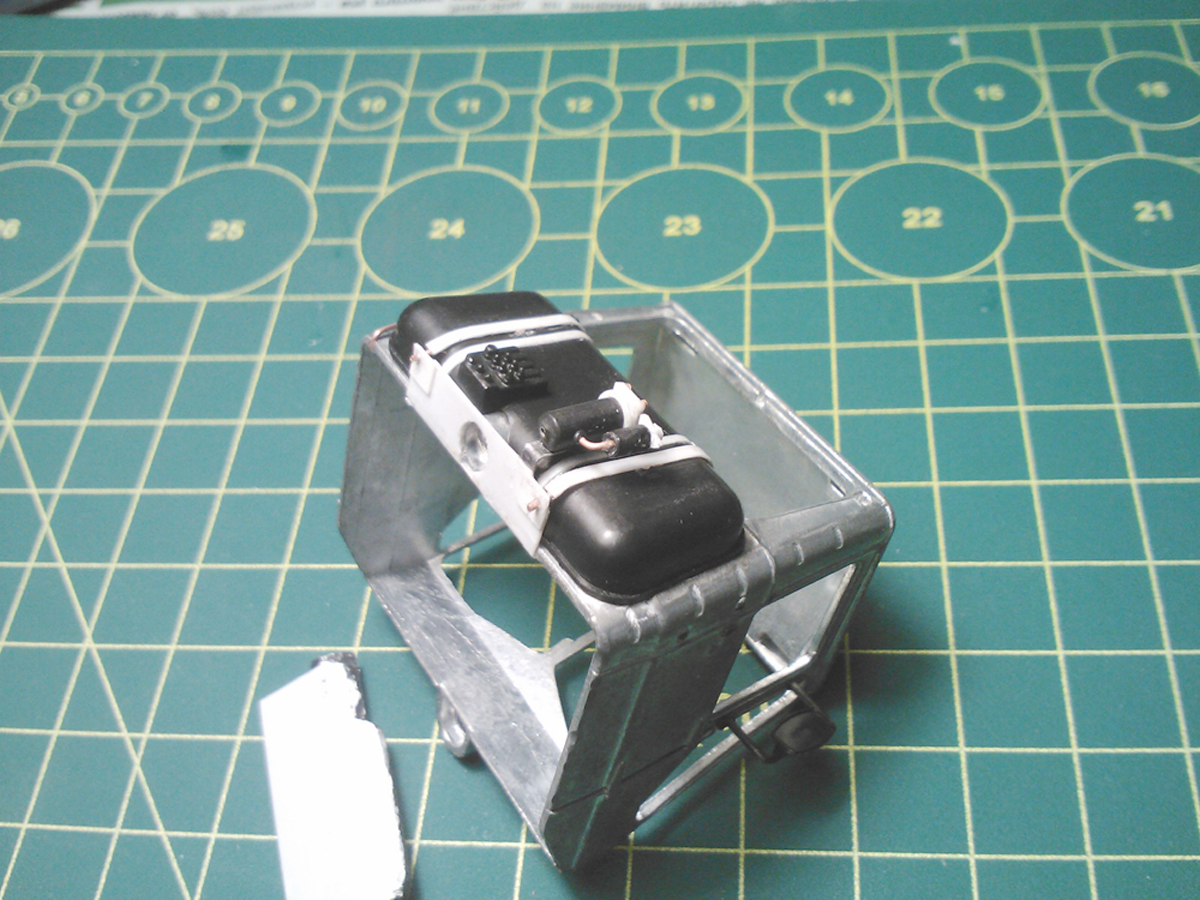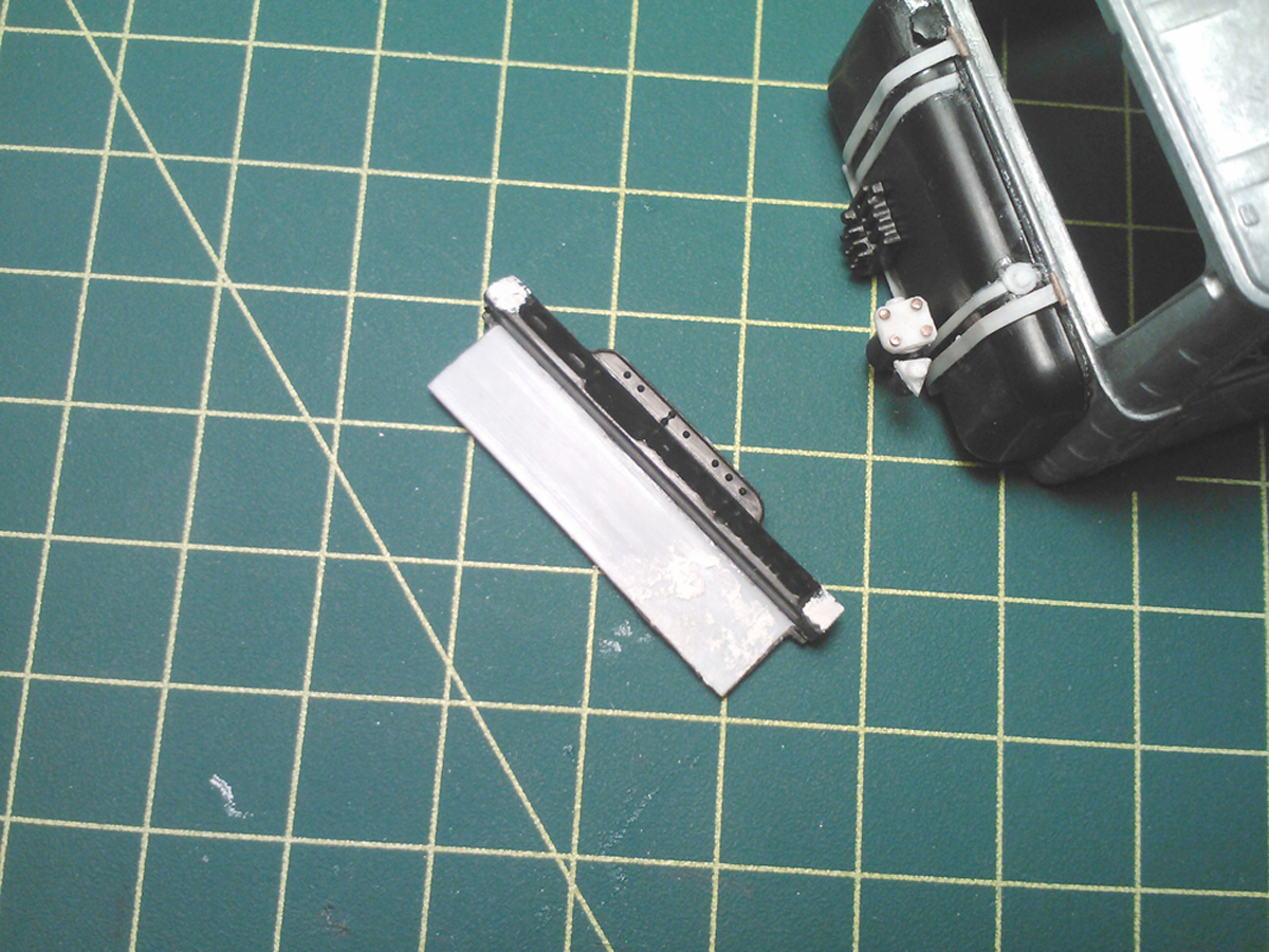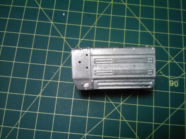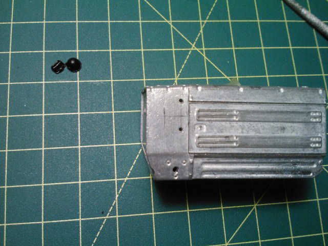 Да, сделал противовес из свинца: один установил в кабине под задней стенкой облицовки салона, а другой поставил под раму как имитацию гидробака: вроде модель стала стоять на всех катках, хотя все-равно нет нет да норовит кувырнуться на нос. наверно придется еще куда-то противовес ставить... Так-то по уму нужно было в самом начале перед установкой в топливный бак вклеить свинец, но теперь уже поздно - совсем не хочется там все разламывать. Как вариант можно вот такой ящик забацать на крыле а в него кусочек свинца спрятать: