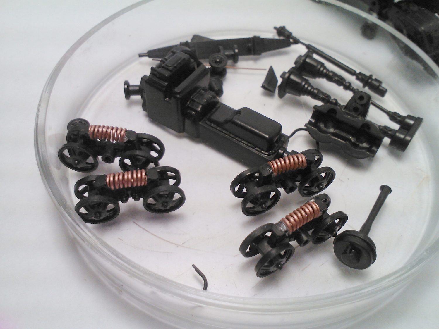 Сами каретки, также детализировал: срезал пластиковые литые пружины, заменил на витые из медной проволоки: