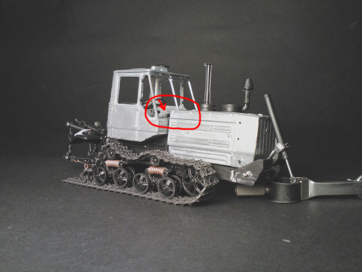 Долго думал использовать отвал и делать бульдозер или делать просто трактор, но в итоге решил использовать отвал. С ним более нагруженная деталями модель выйдет мне кажется. Да и набор почему-то сделан так, что только бульдозер можно собрать: передняя часть рамы, куда крепится подрамник гидроцилиндра не проработана, чтоб ее открытой оставить, и в наборе нет буксировочных крюков (хотя в колесном варианте Т150 они есть и расположены на дублируемом в обоих наборах литнике. Это тоже меня заставило принять решение делать бульдозер: не решился я самостоятельно пилить эти крюки, да еще в таком мелком масштабе, а они достаточно сложные если посмотреть на прототип: