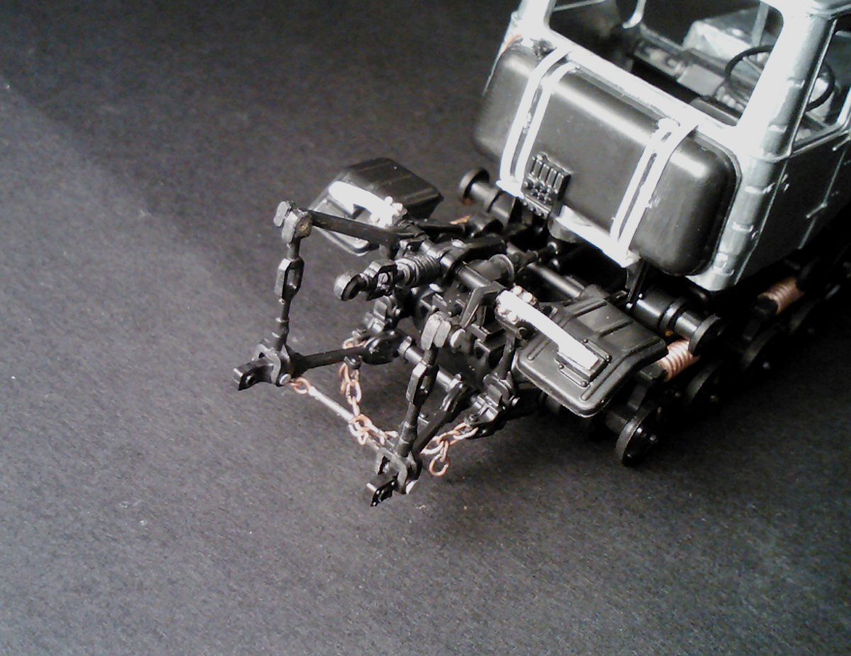 Дело медленно, но движется. Собрана ходовая часть, кроме ведущих звездочек, установлена навеска: